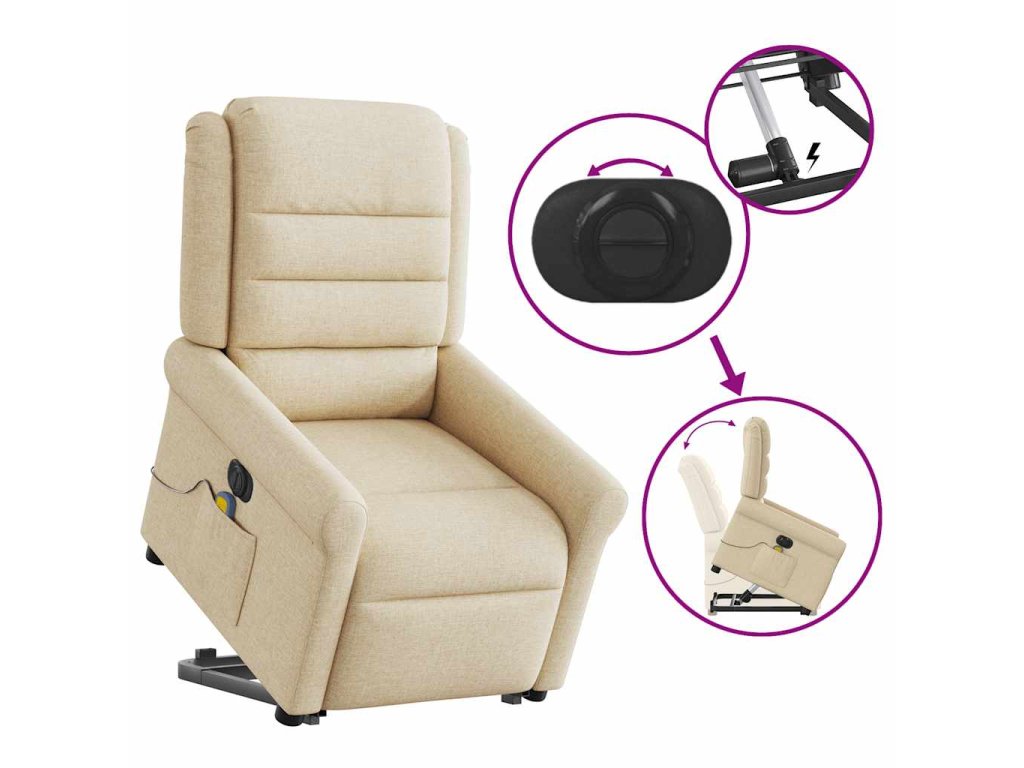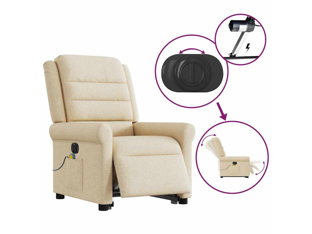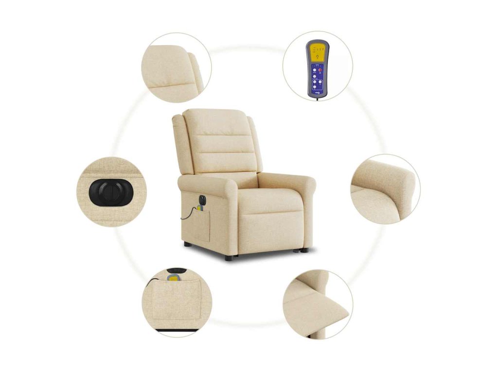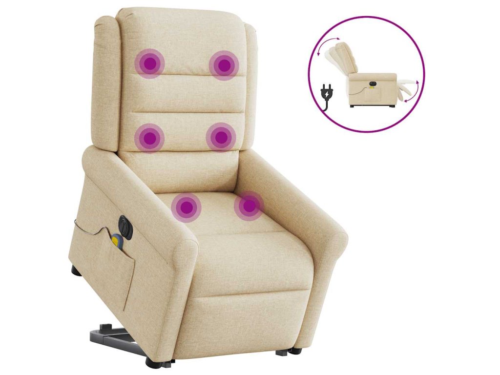 Elektrické zvedací masážní polohovací křeslo krémové textil 3303352