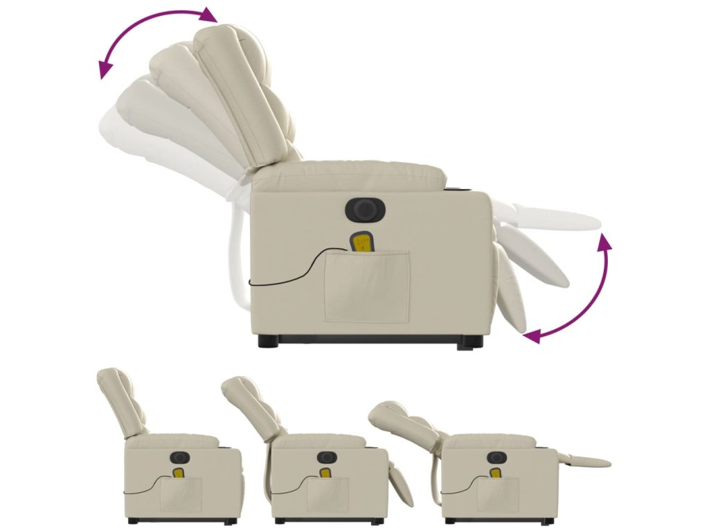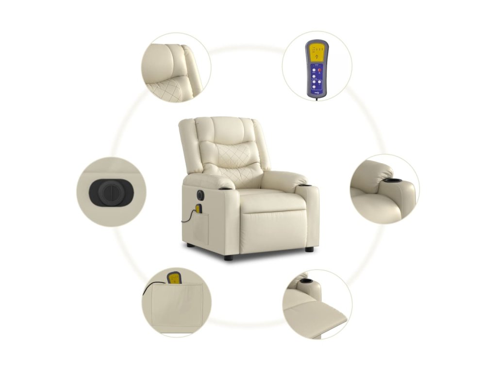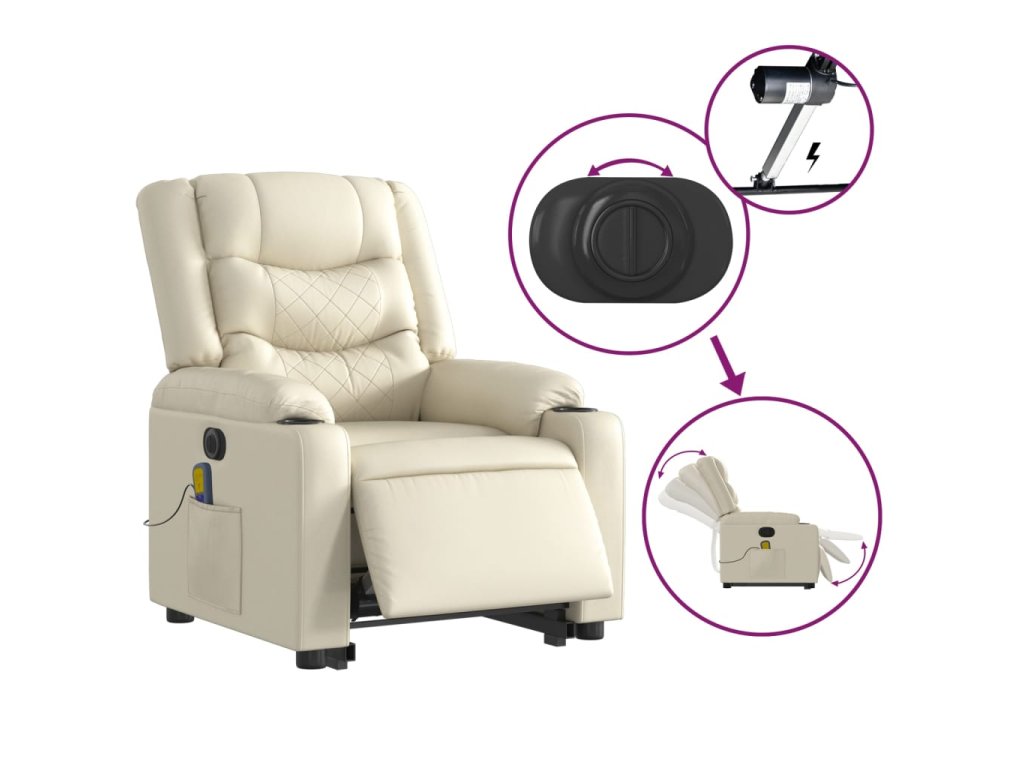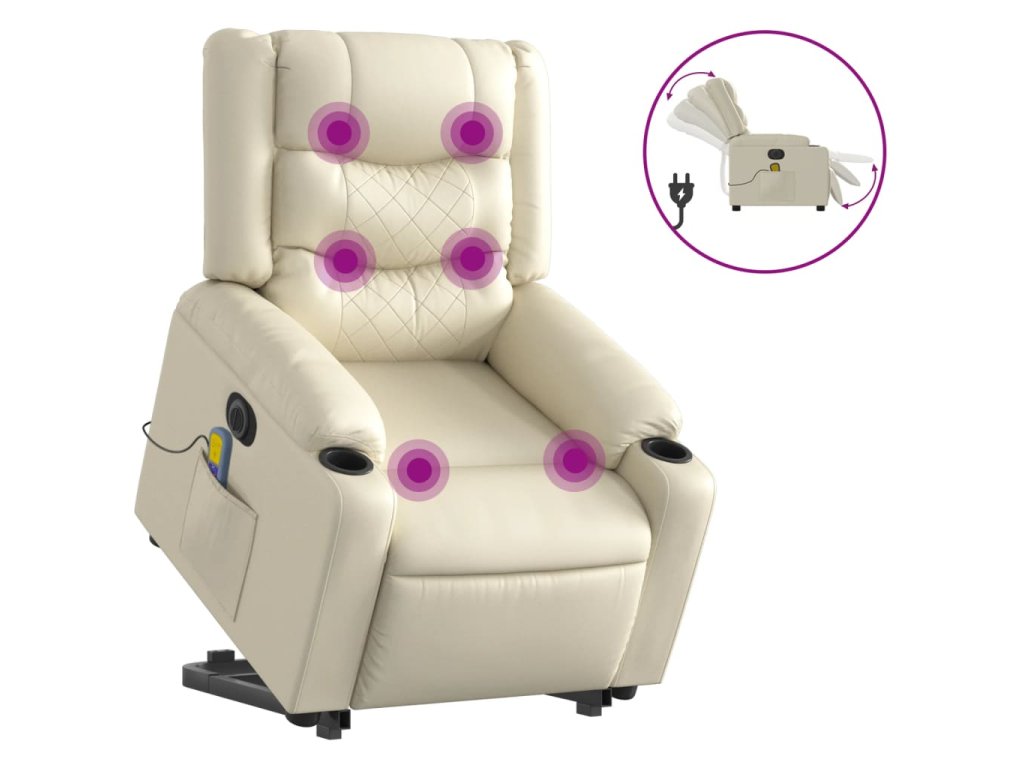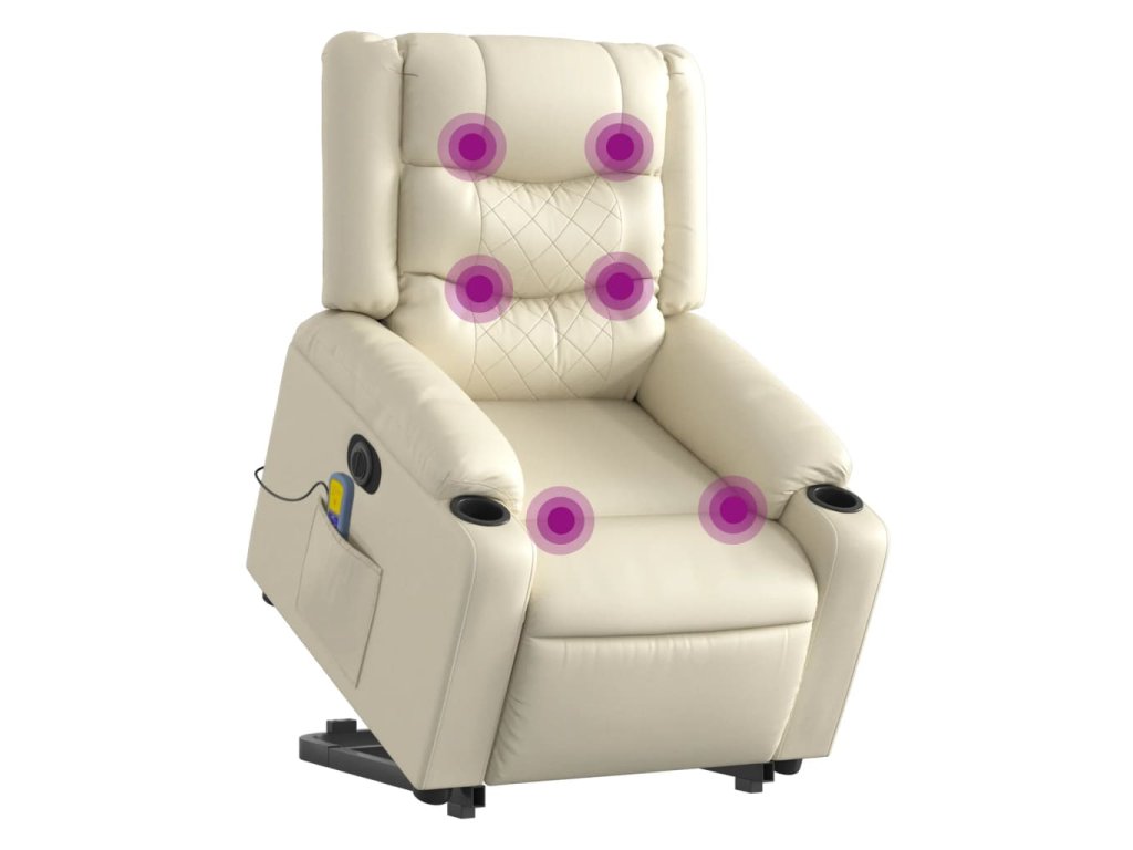 Elektrické zvedací masážní polohovací křeslo krémové umělá kůže 3206564