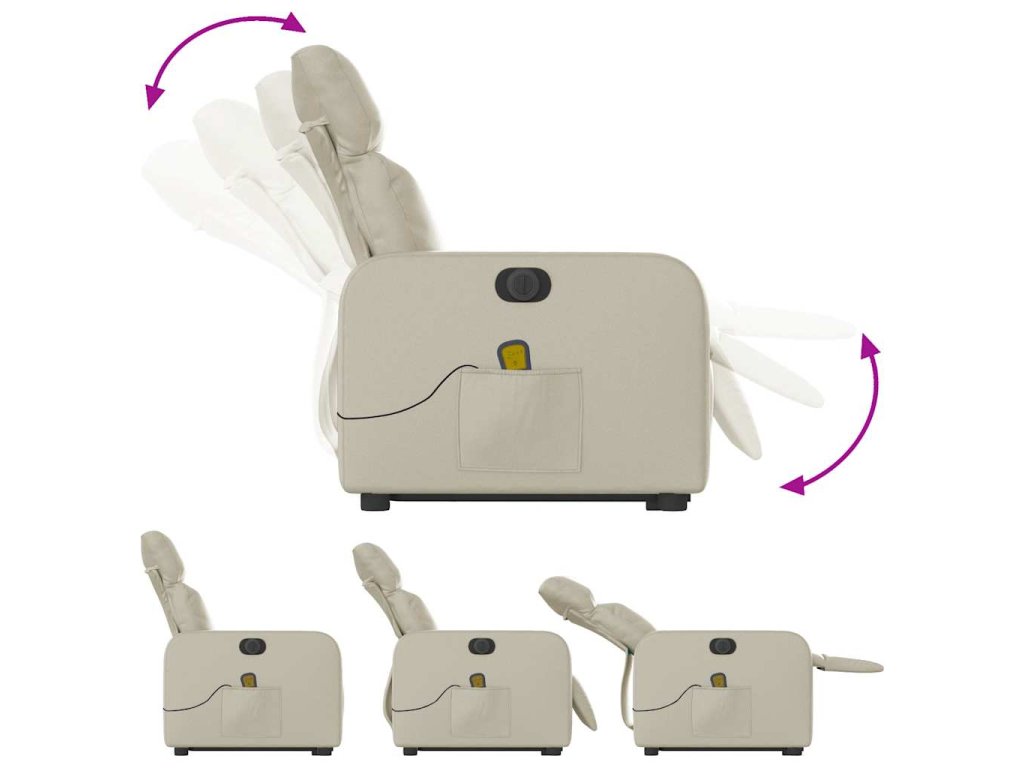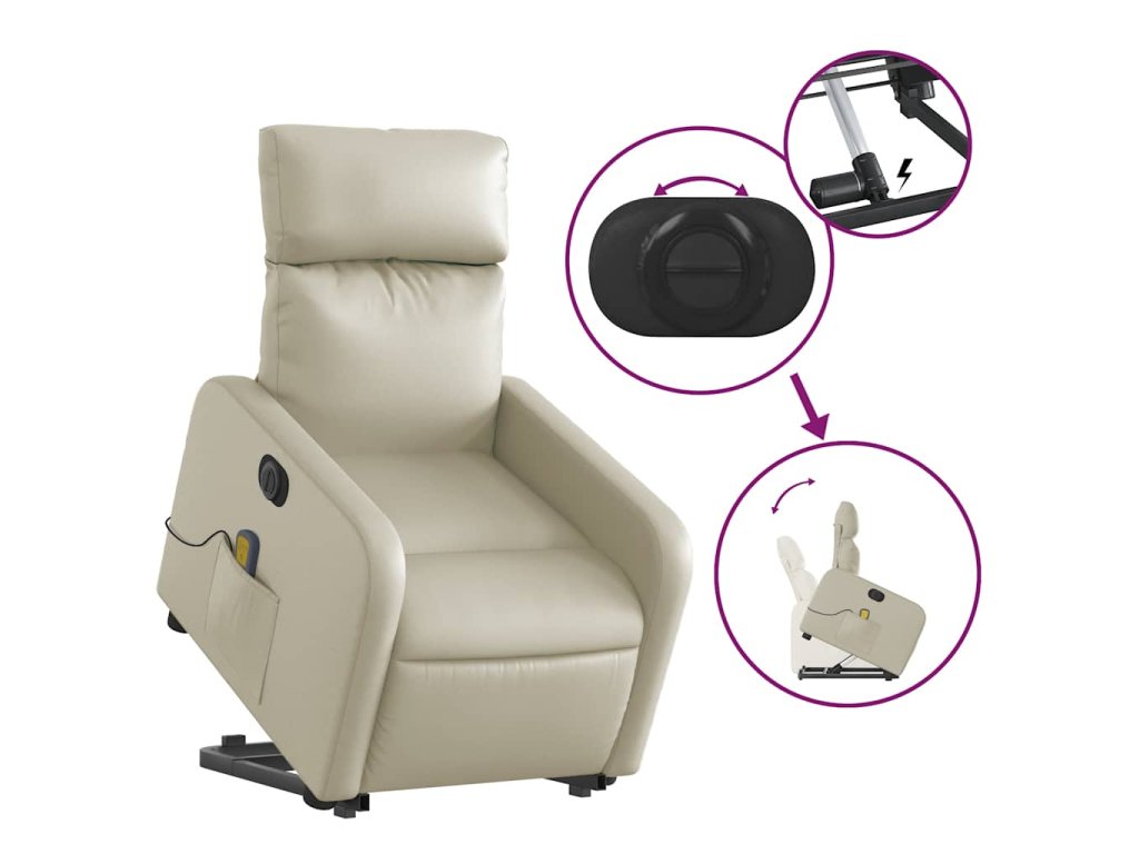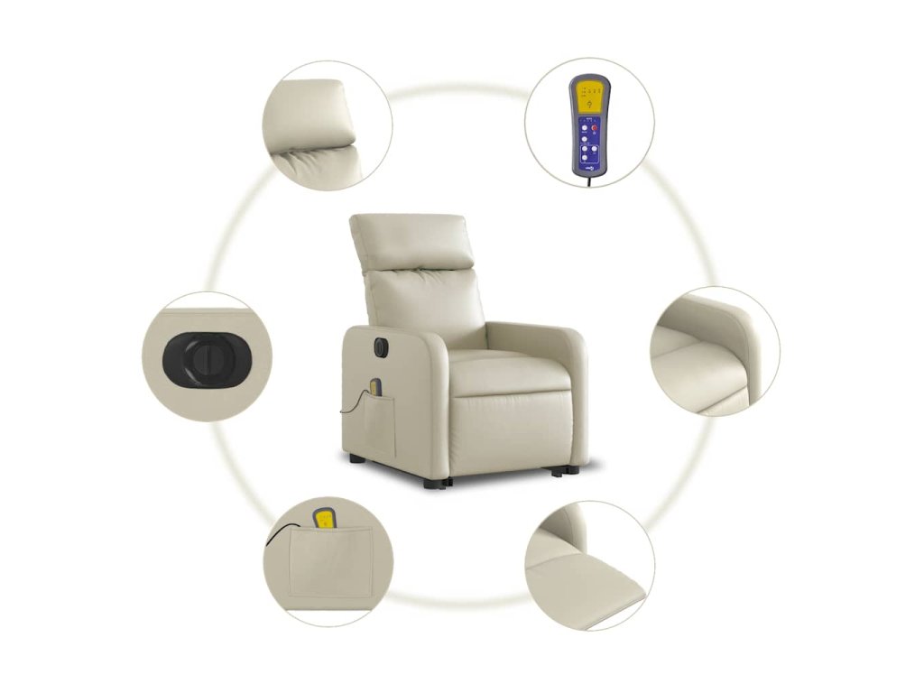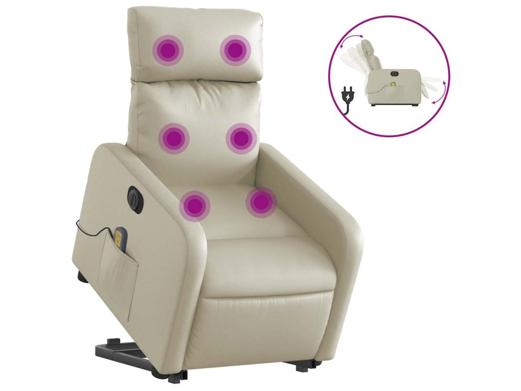 Elektrické zvedací masážní polohovací křeslo krémové umělá kůže 3206771