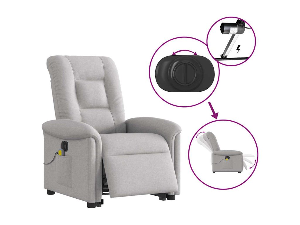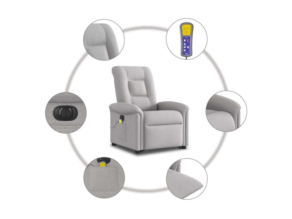 Elektrické zvedací masážní polohovací křeslo obláčkově šedé 3303293