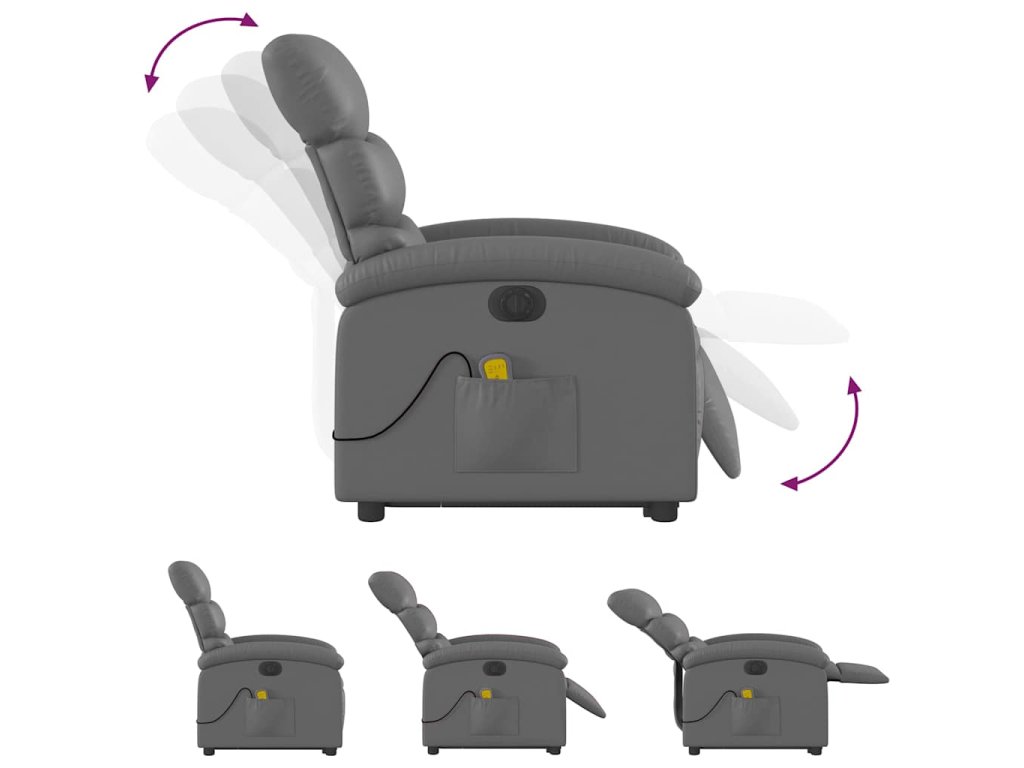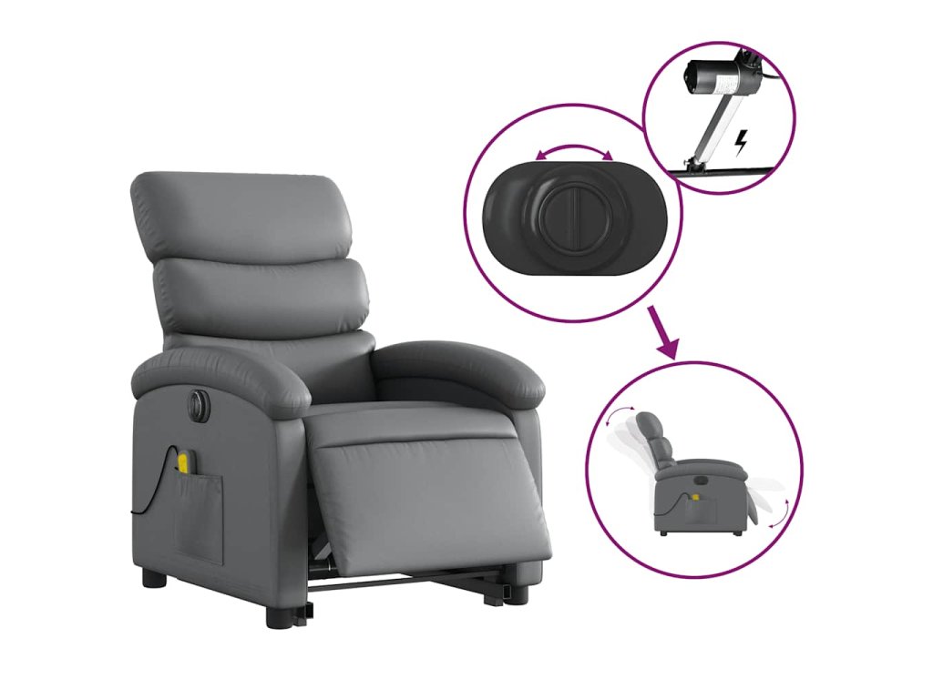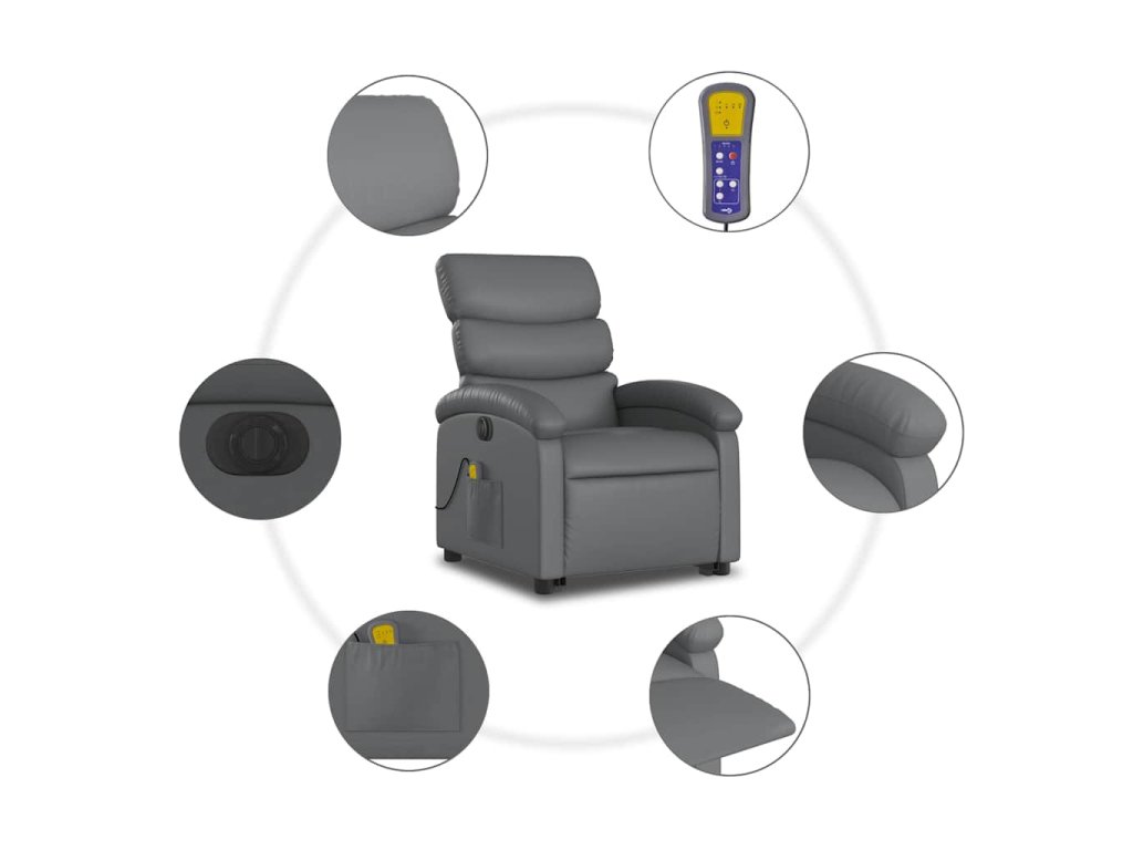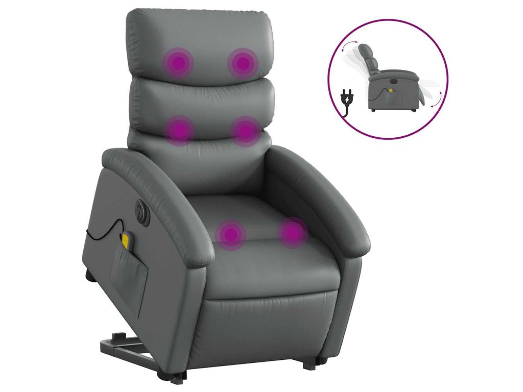 Elektrické zvedací masážní polohovací křeslo šedé umělá kůže 3204064