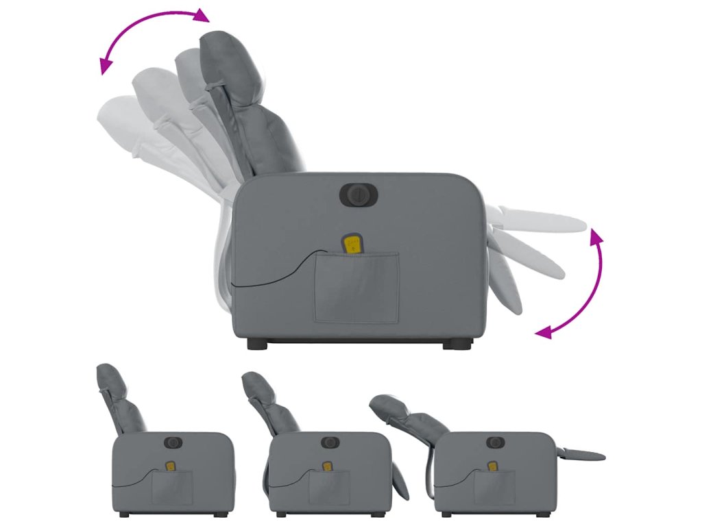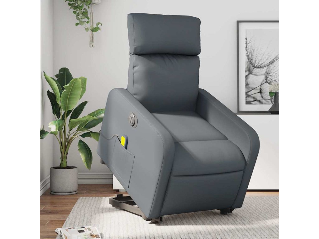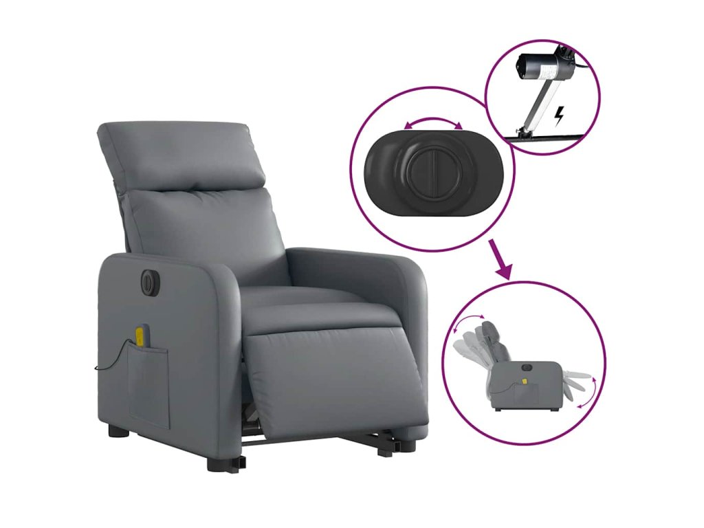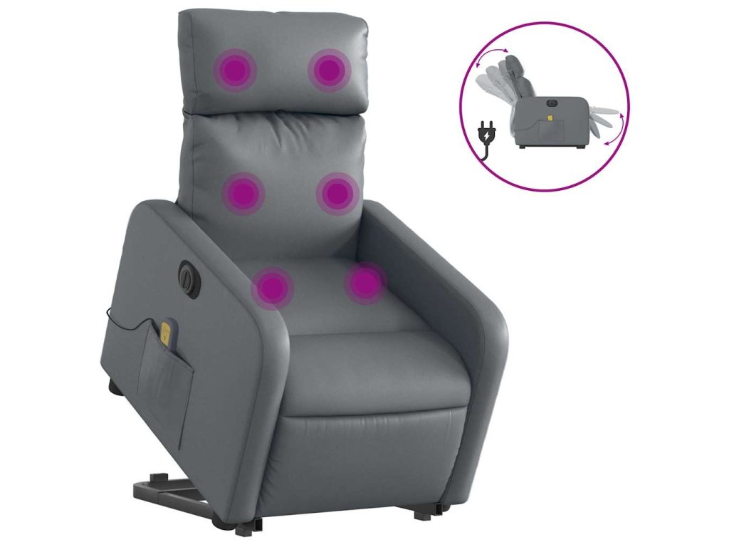 Elektrické zvedací masážní polohovací křeslo šedé umělá kůže 3206773