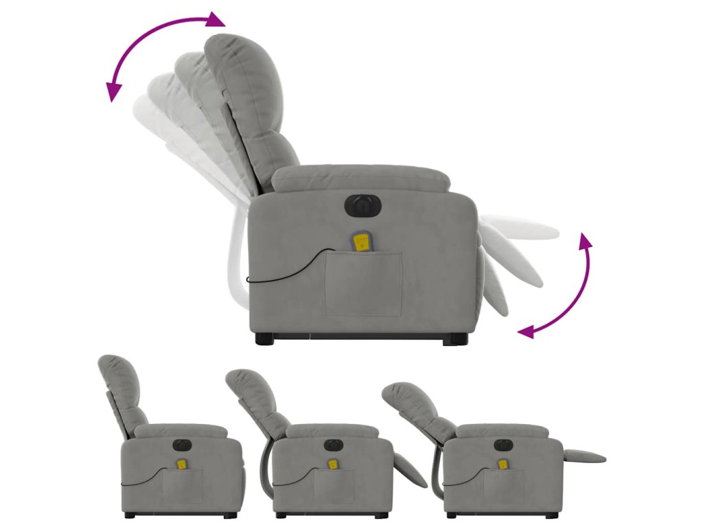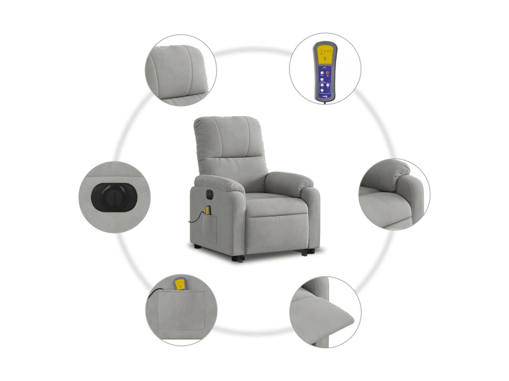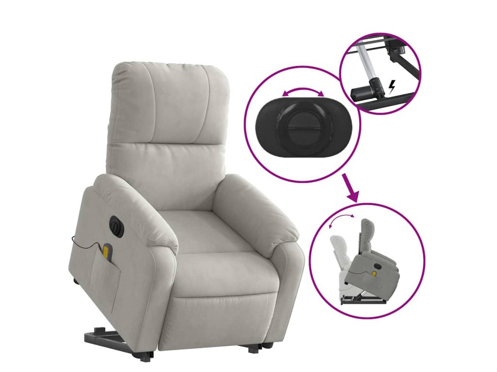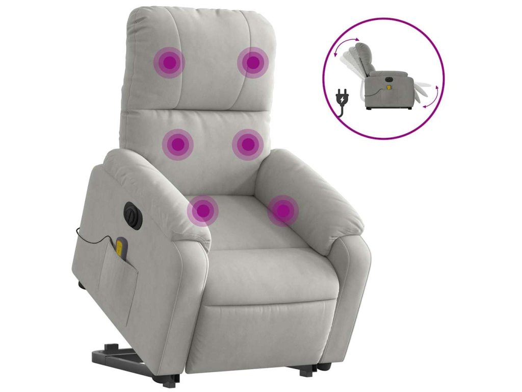 Elektrické zvedací masážní polohovací křeslo světle šedé 3204951