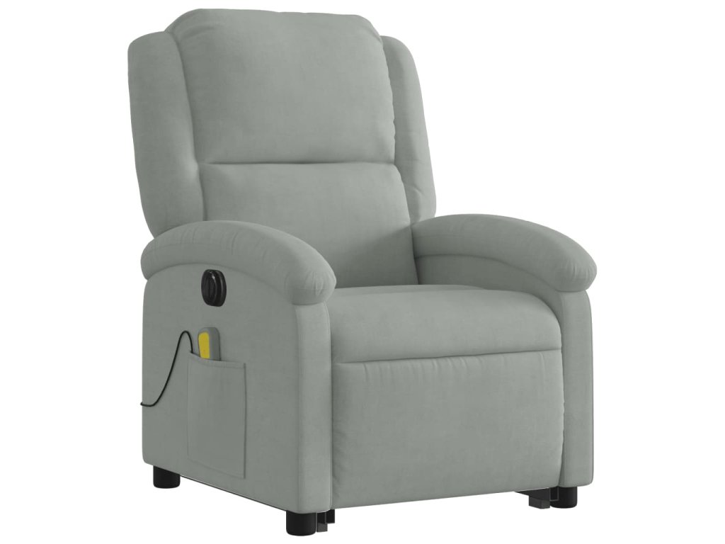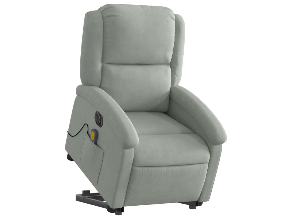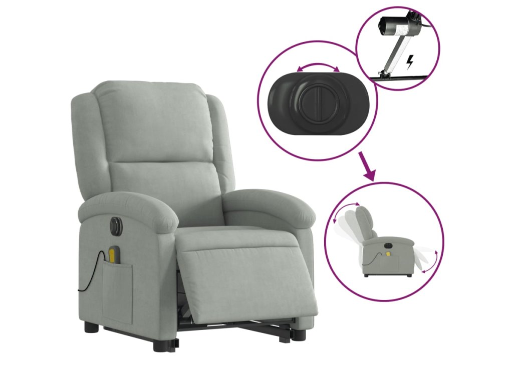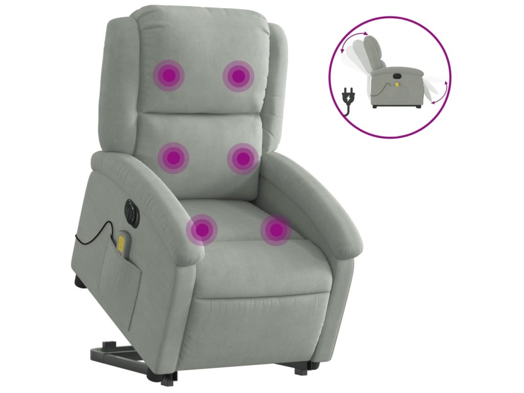 Elektrické zvedací masážní polohovací křeslo světle šedé samet 3204333