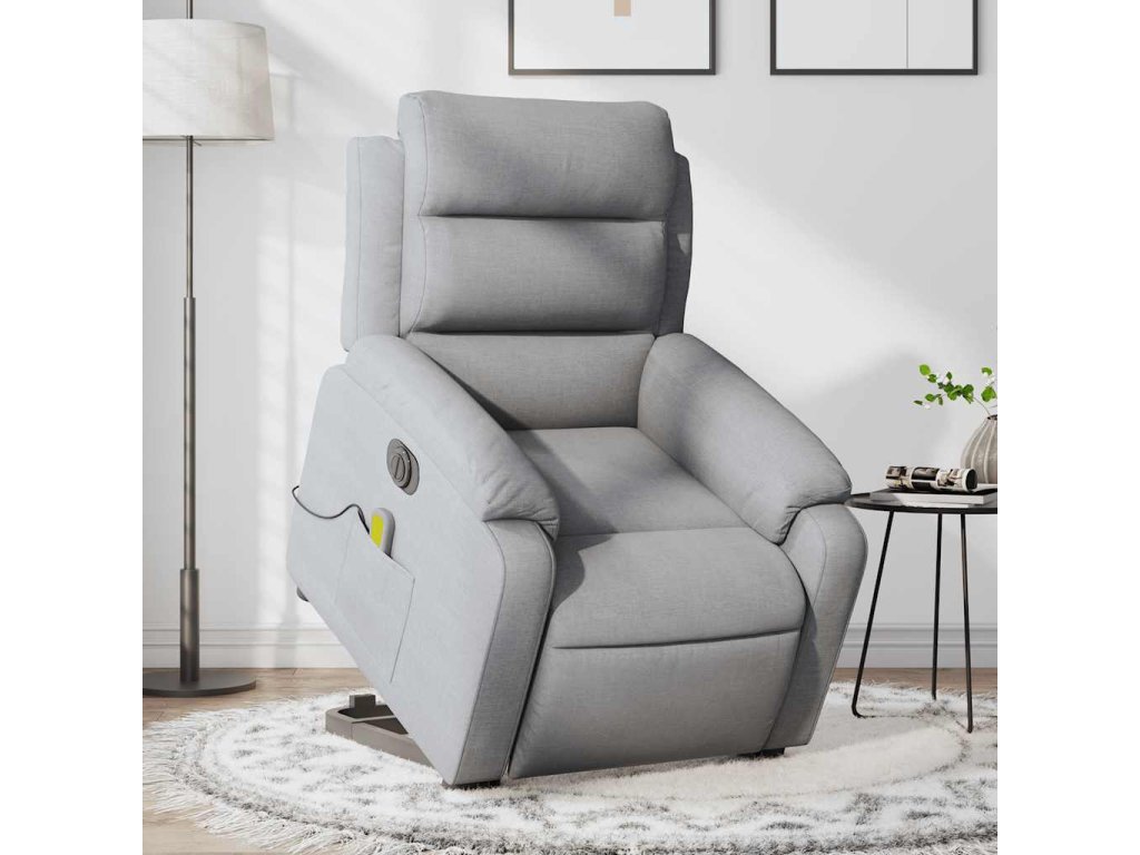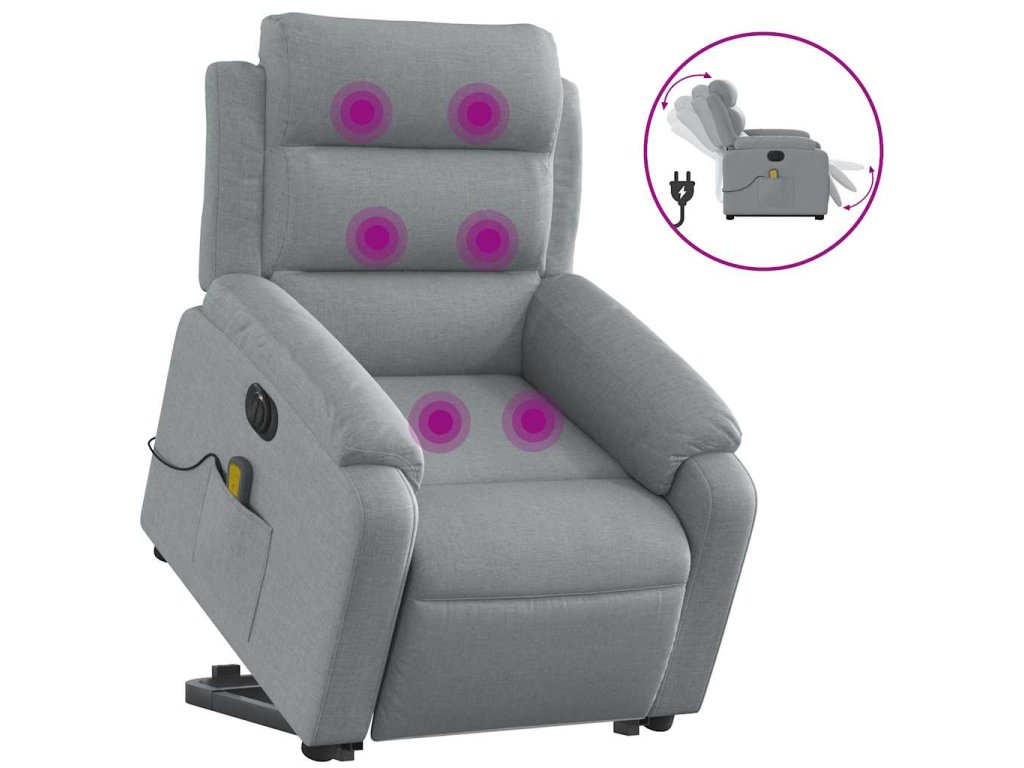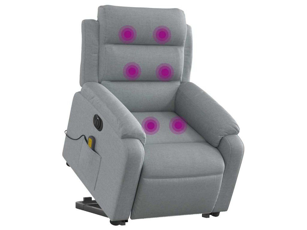 Elektrické zvedací masážní polohovací křeslo světle šedé textil 3205016