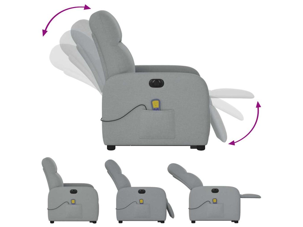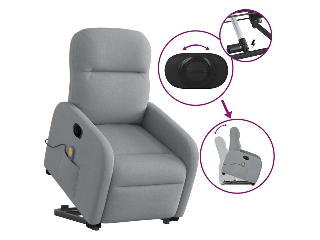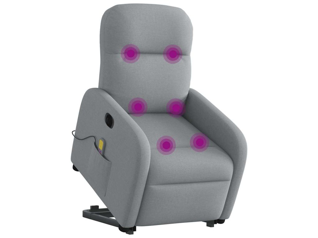 Elektrické zvedací masážní polohovací křeslo světle šedé textil 3303002