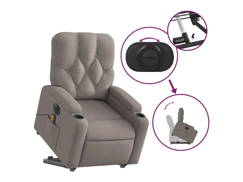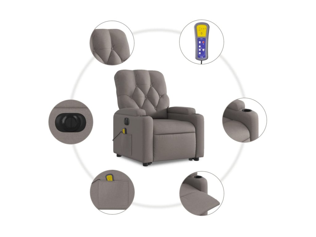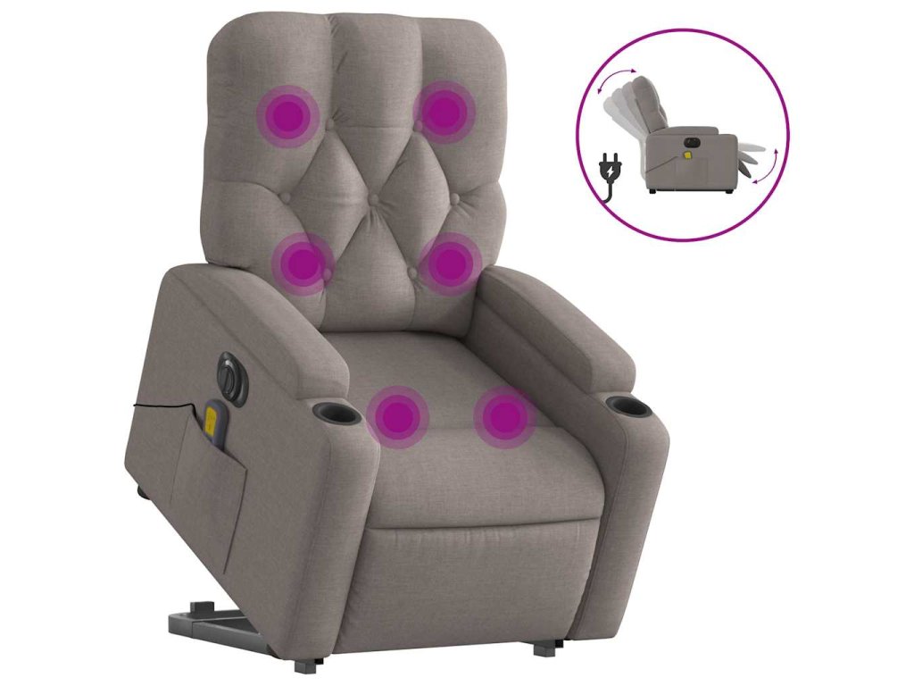 Elektrické zvedací masážní polohovací křeslo taupe textil 3204754