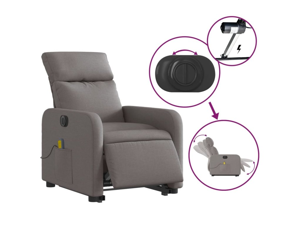 Elektrické zvedací masážní polohovací křeslo taupe textil 3206733