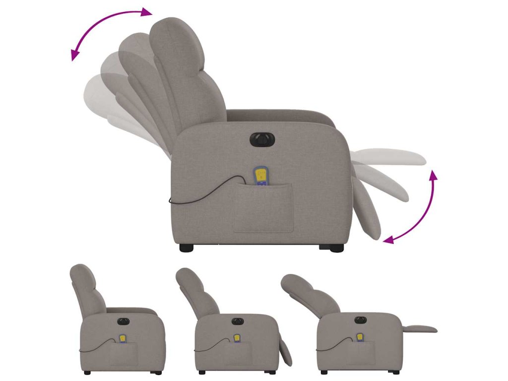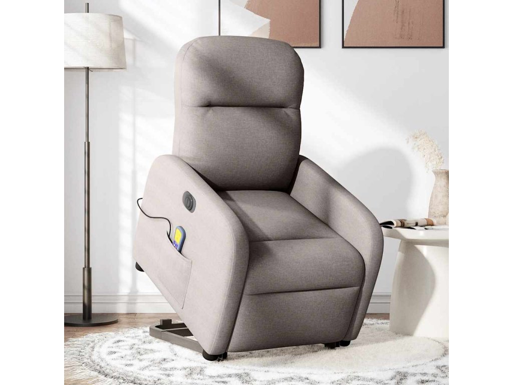Elektrické zvedací masážní polohovací křeslo taupe textil 3303009