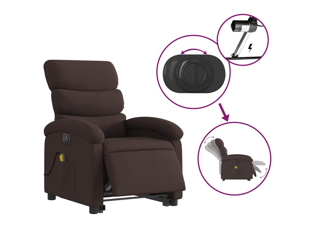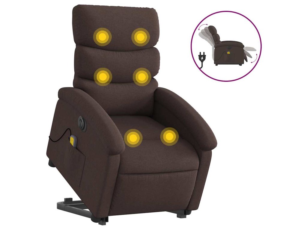 Elektrické zvedací masážní polohovací křeslo tmavě hnědé textil 3204019