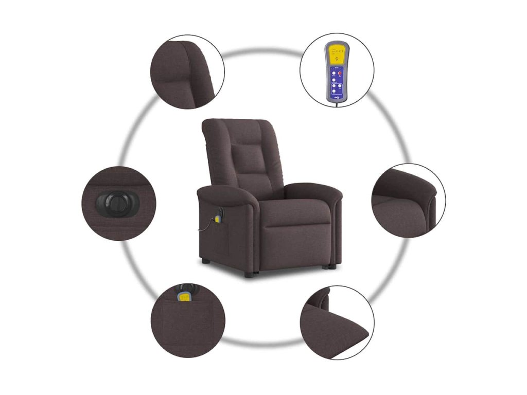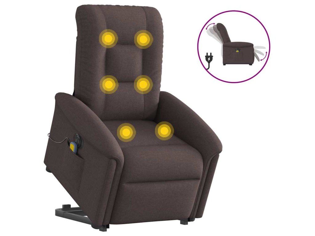 Elektrické zvedací masážní polohovací křeslo tmavě hnědé textil 3303289