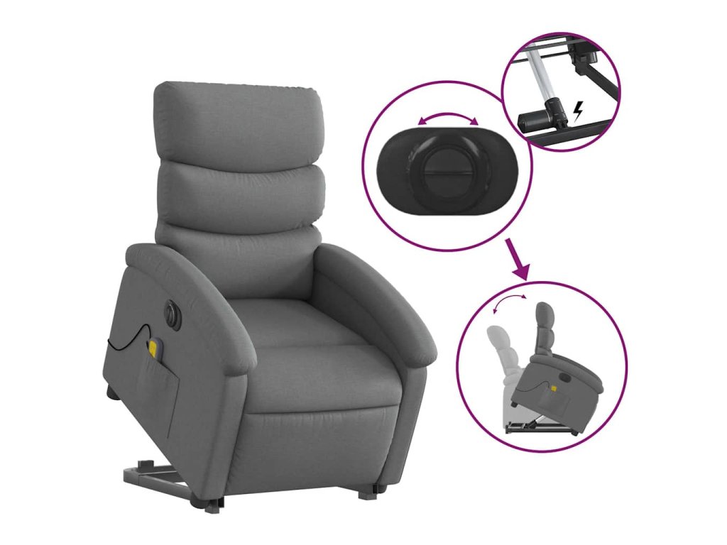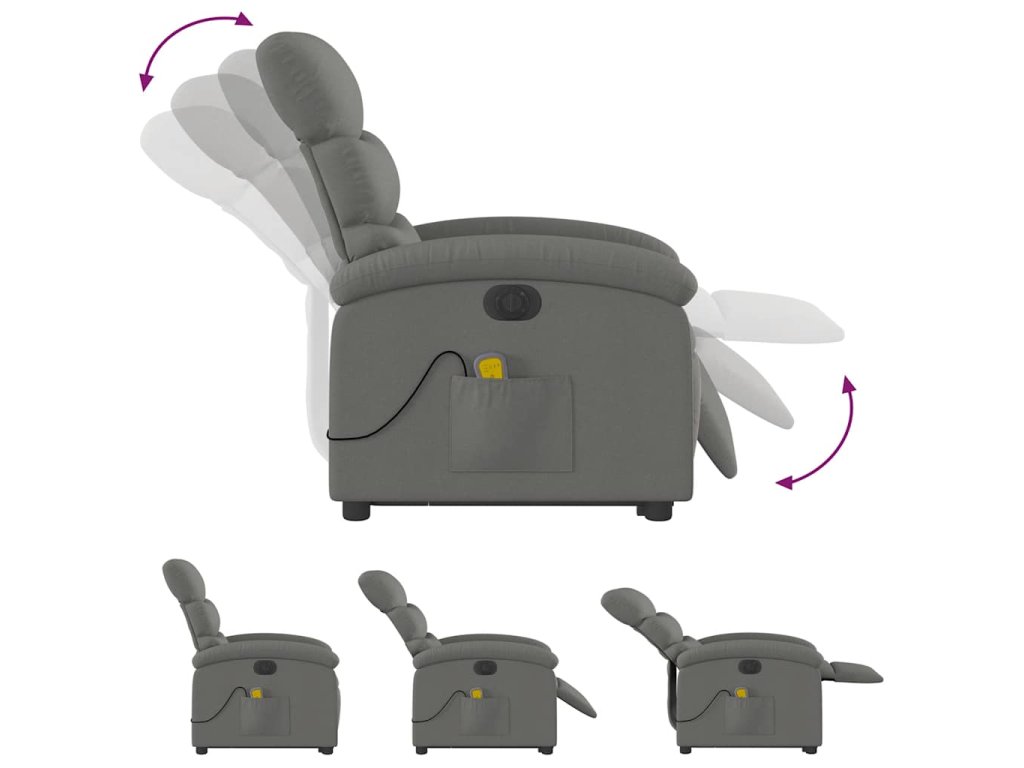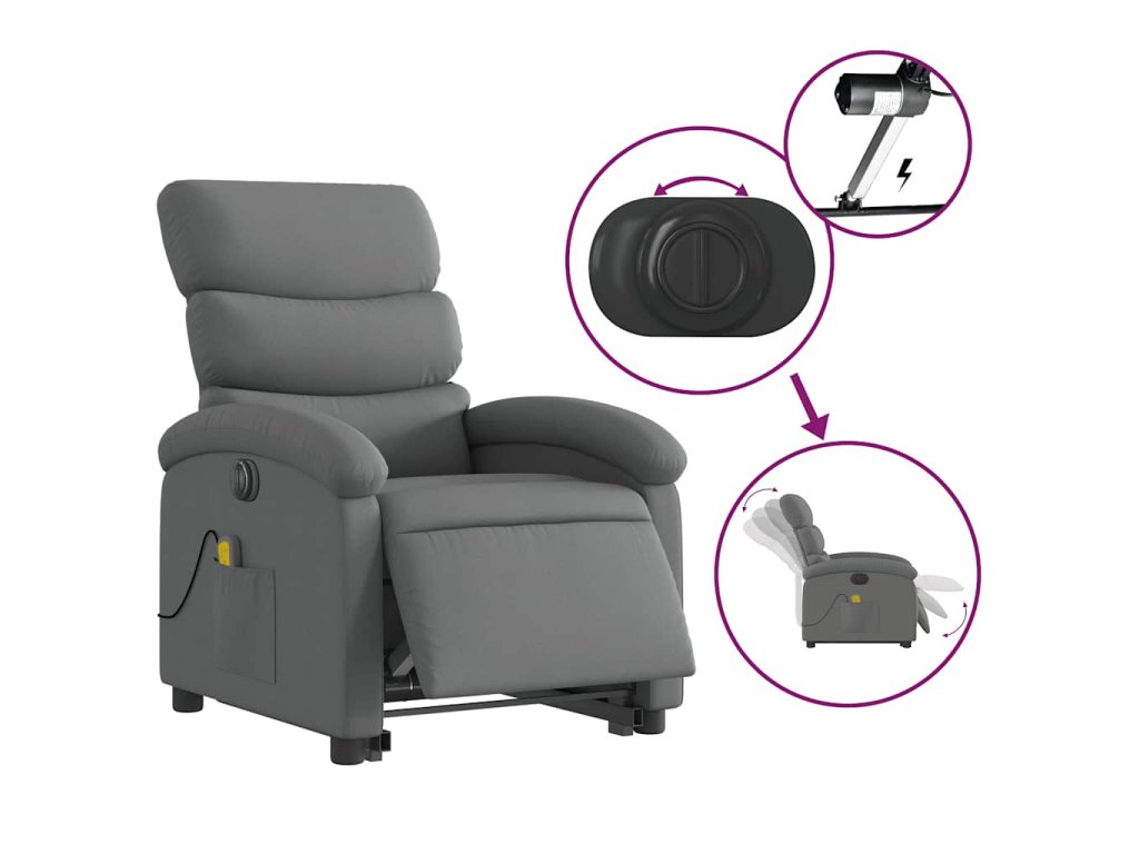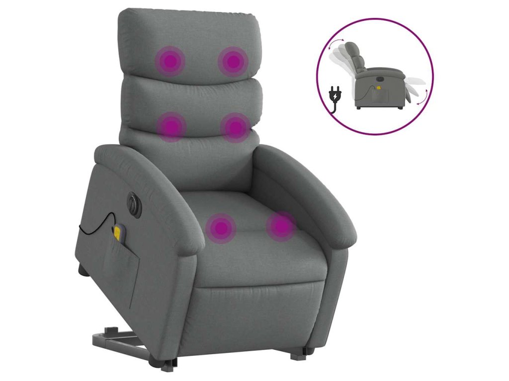 Elektrické zvedací masážní polohovací křeslo tmavě šedé textil 3204015