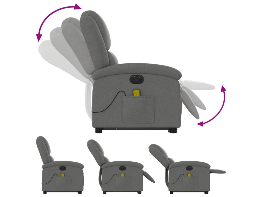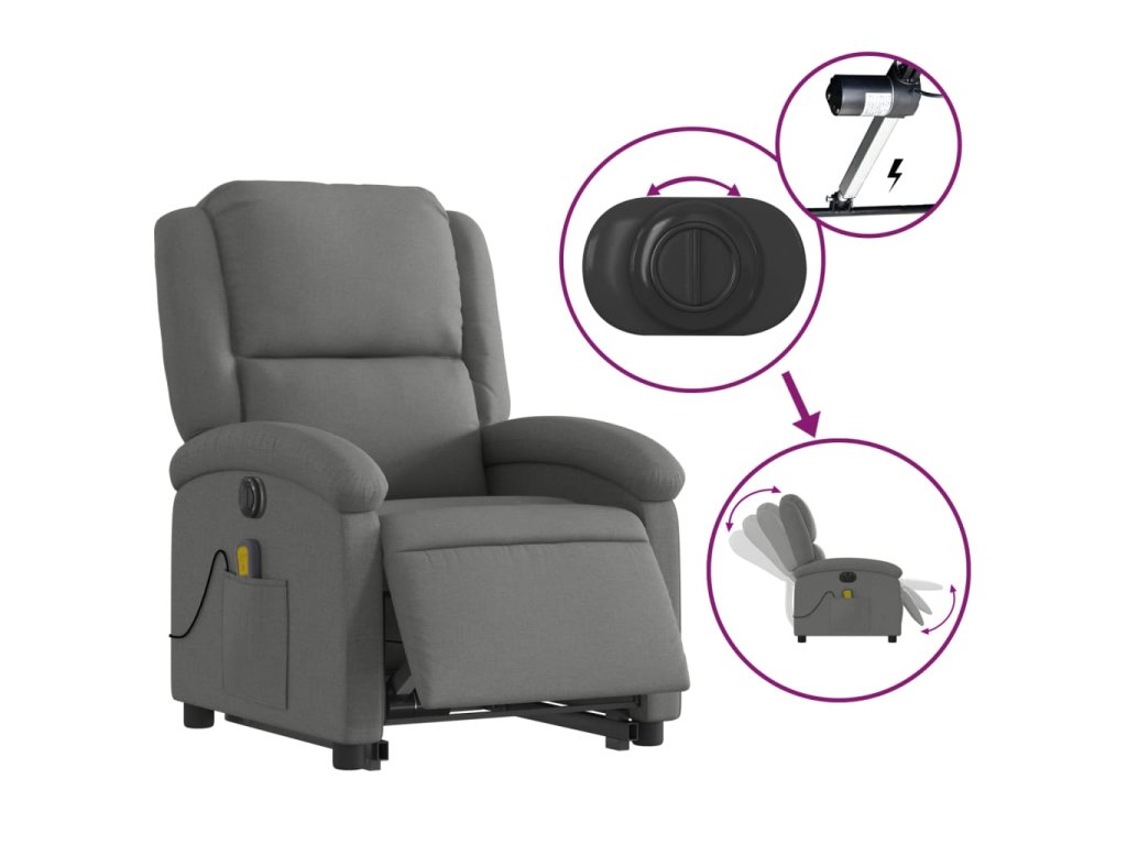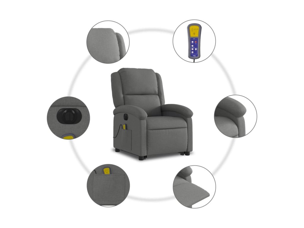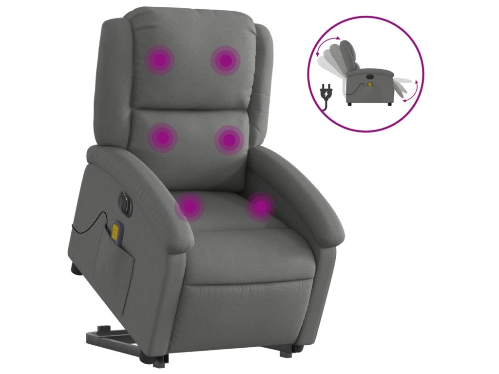 Elektrické zvedací masážní polohovací křeslo tmavě šedé textil 3204201