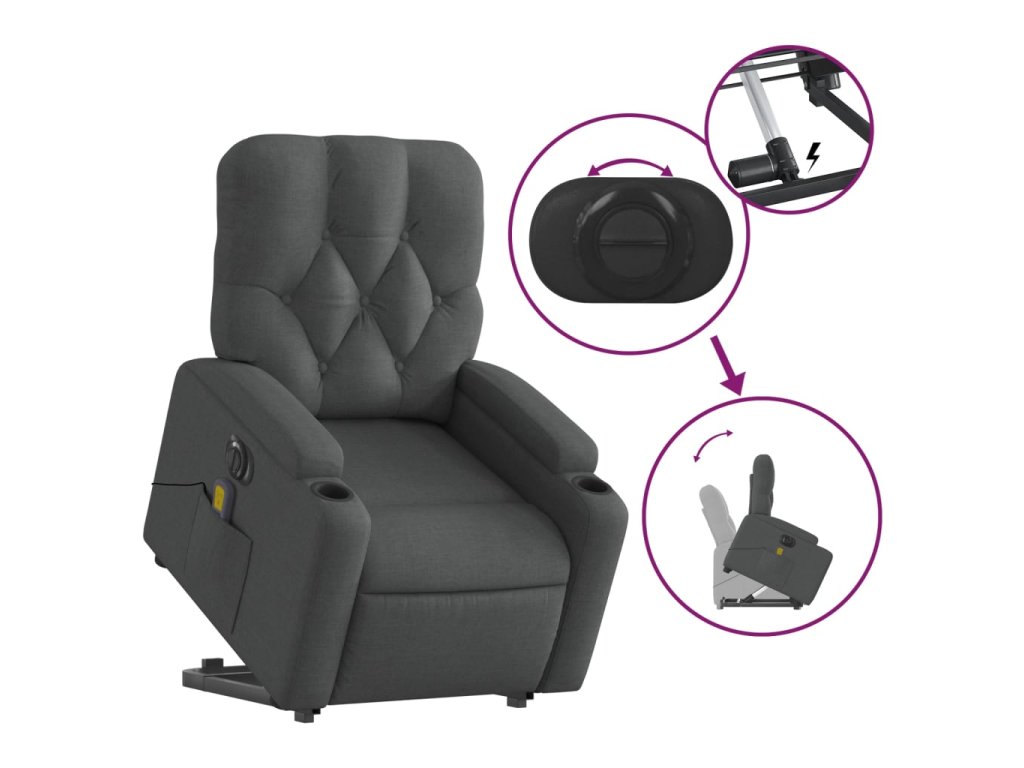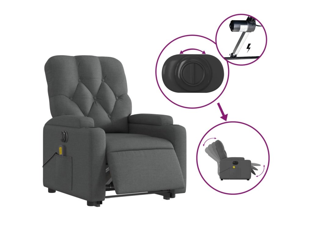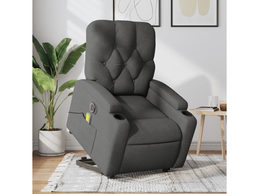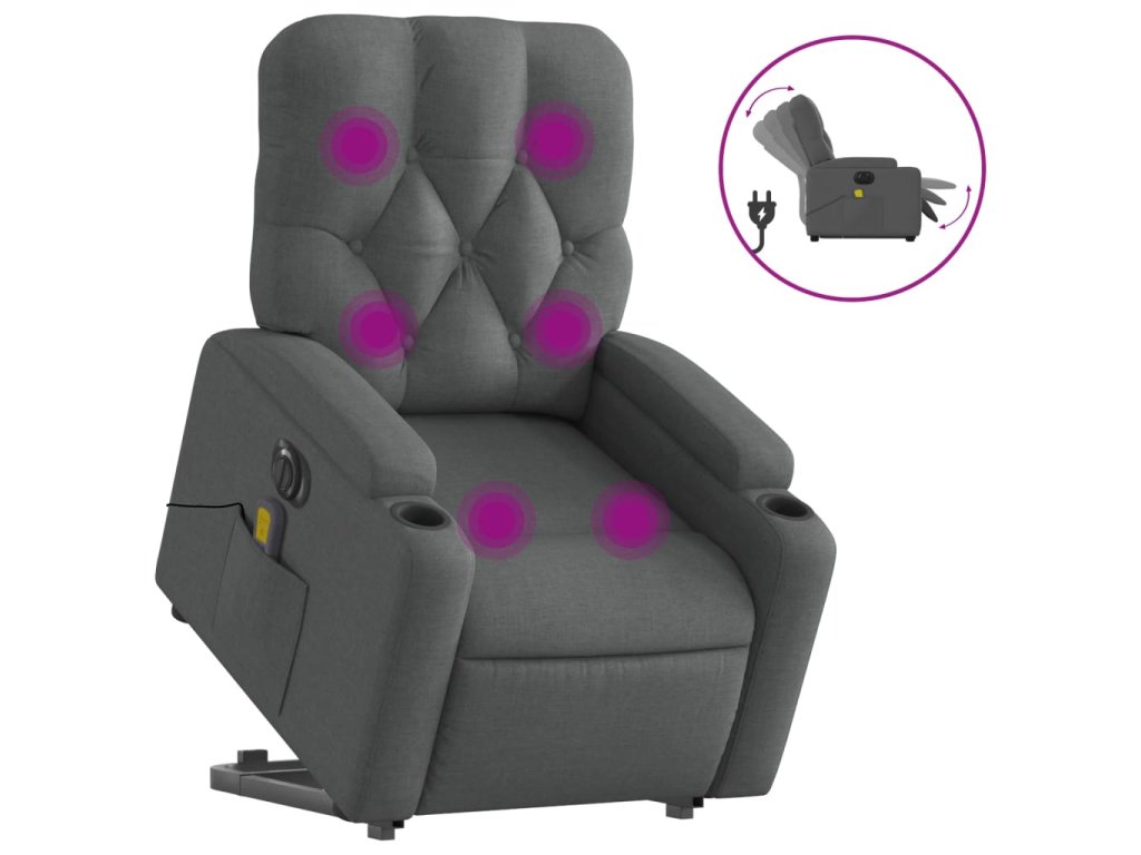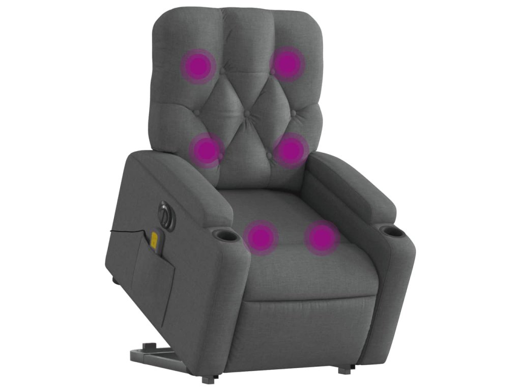 Elektrické zvedací masážní polohovací křeslo tmavě šedé textil 3204747