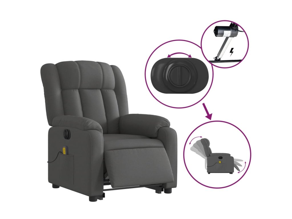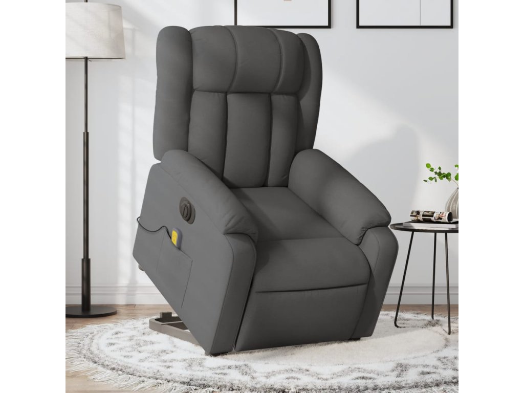 Elektrické zvedací masážní polohovací křeslo tmavě šedé textil 3205353