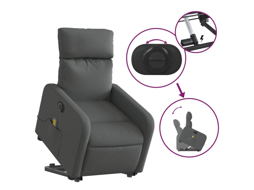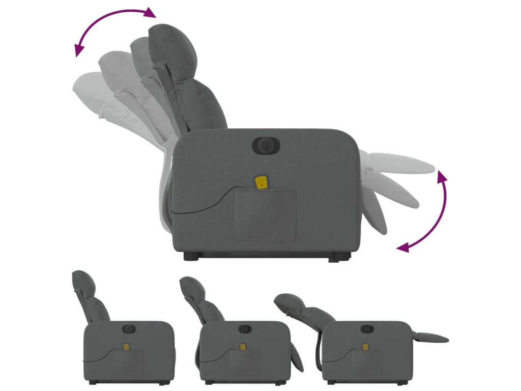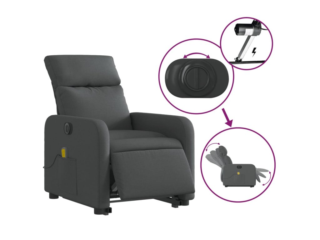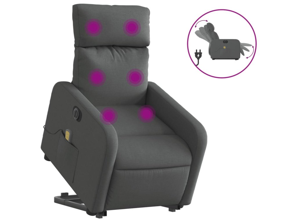 Elektrické zvedací masážní polohovací křeslo tmavě šedé textil 3206727