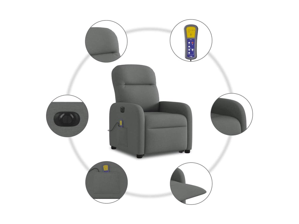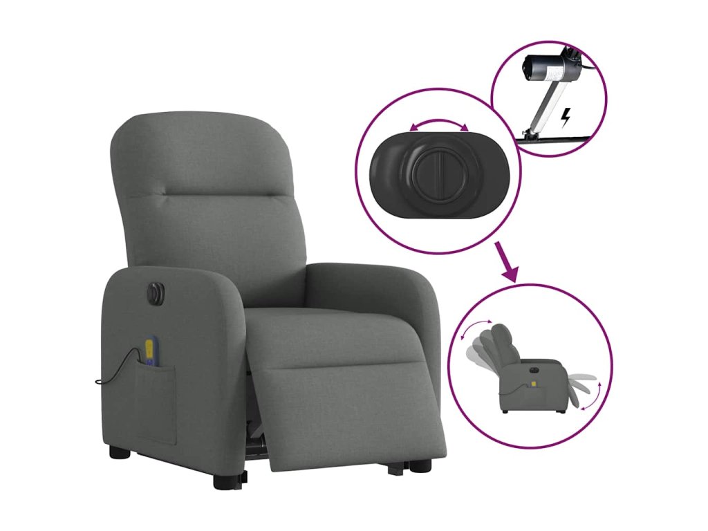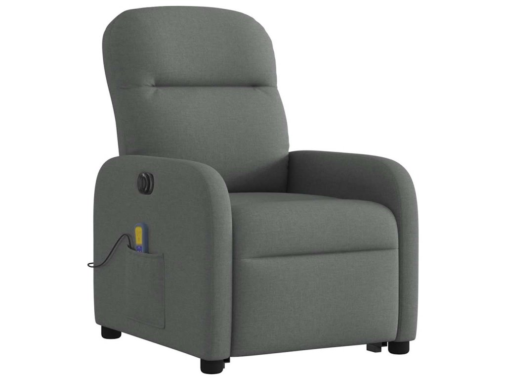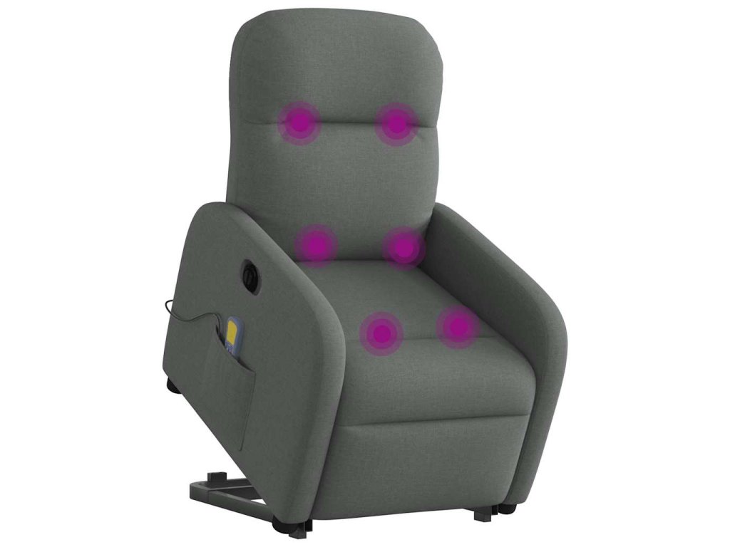 Elektrické zvedací masážní polohovací křeslo tmavě šedé textil 3303003