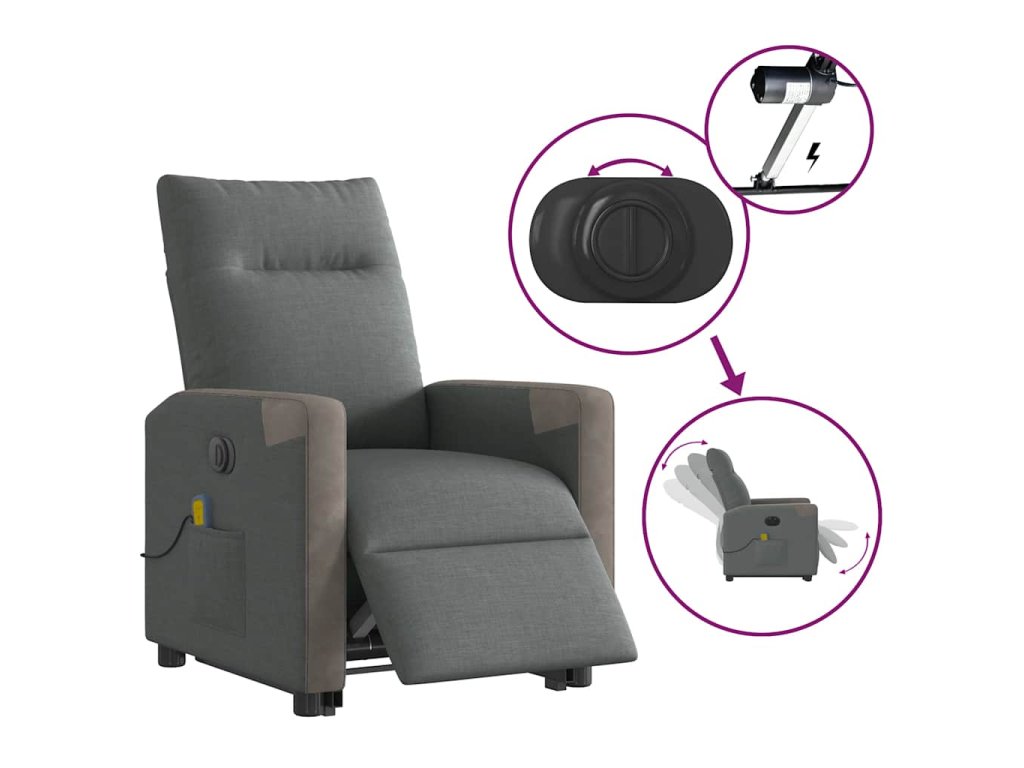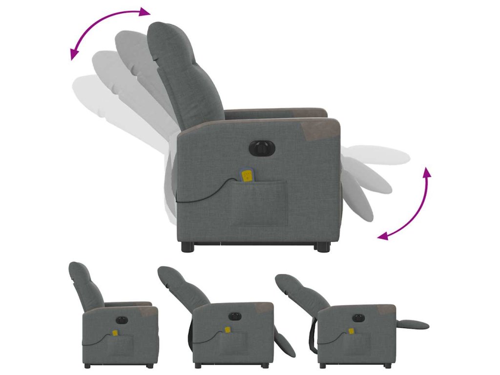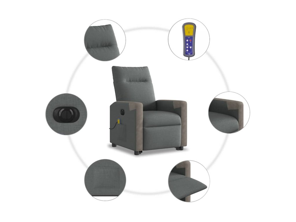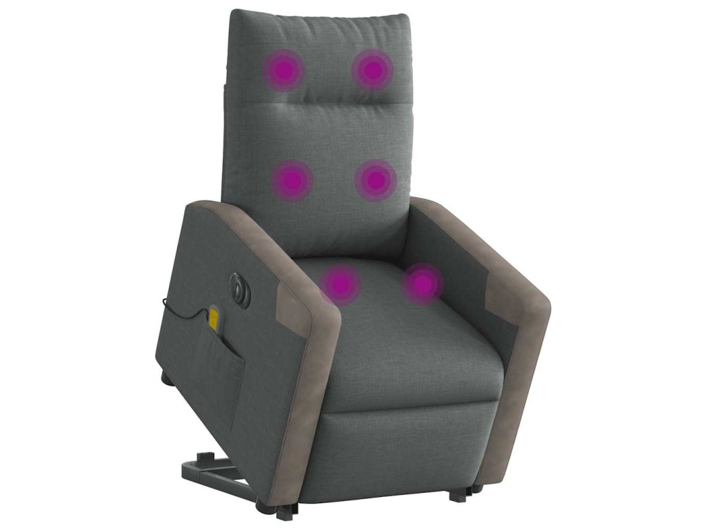 Elektrické zvedací masážní polohovací křeslo tmavě šedé textil 3324106