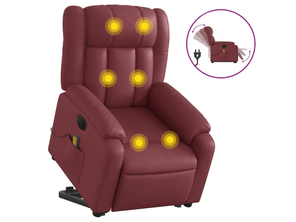 Elektrické zvedací masážní polohovací křeslo vínové umělá kůže 3205289
