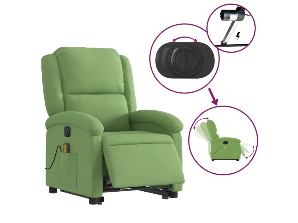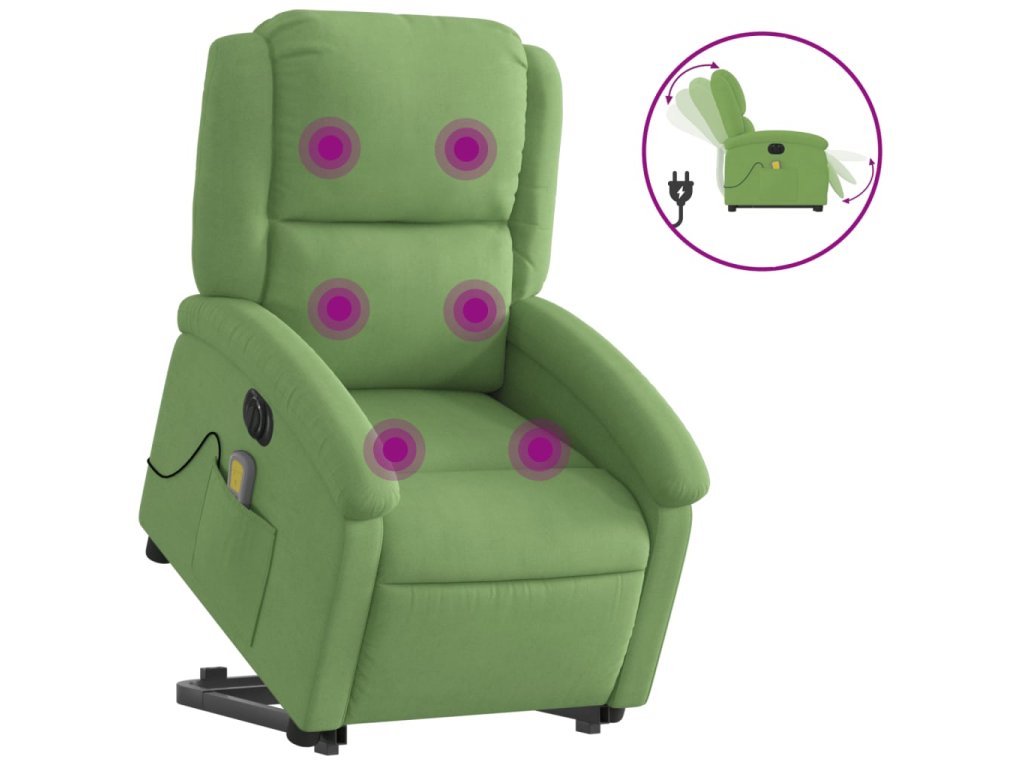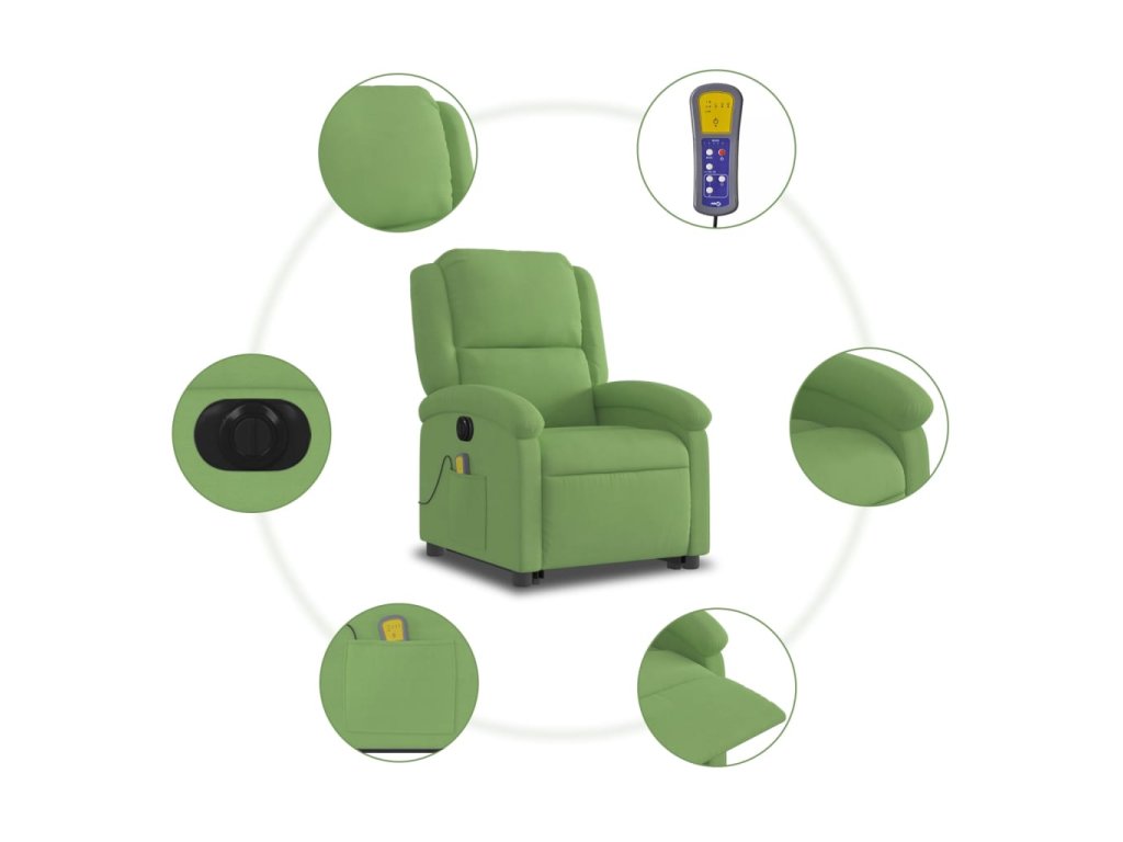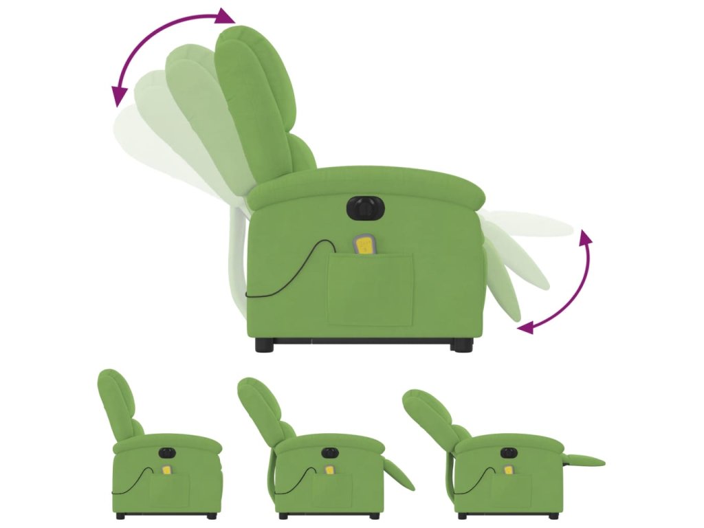 Elektrické zvedací masážní polohovací křeslo zelené samet 3204336