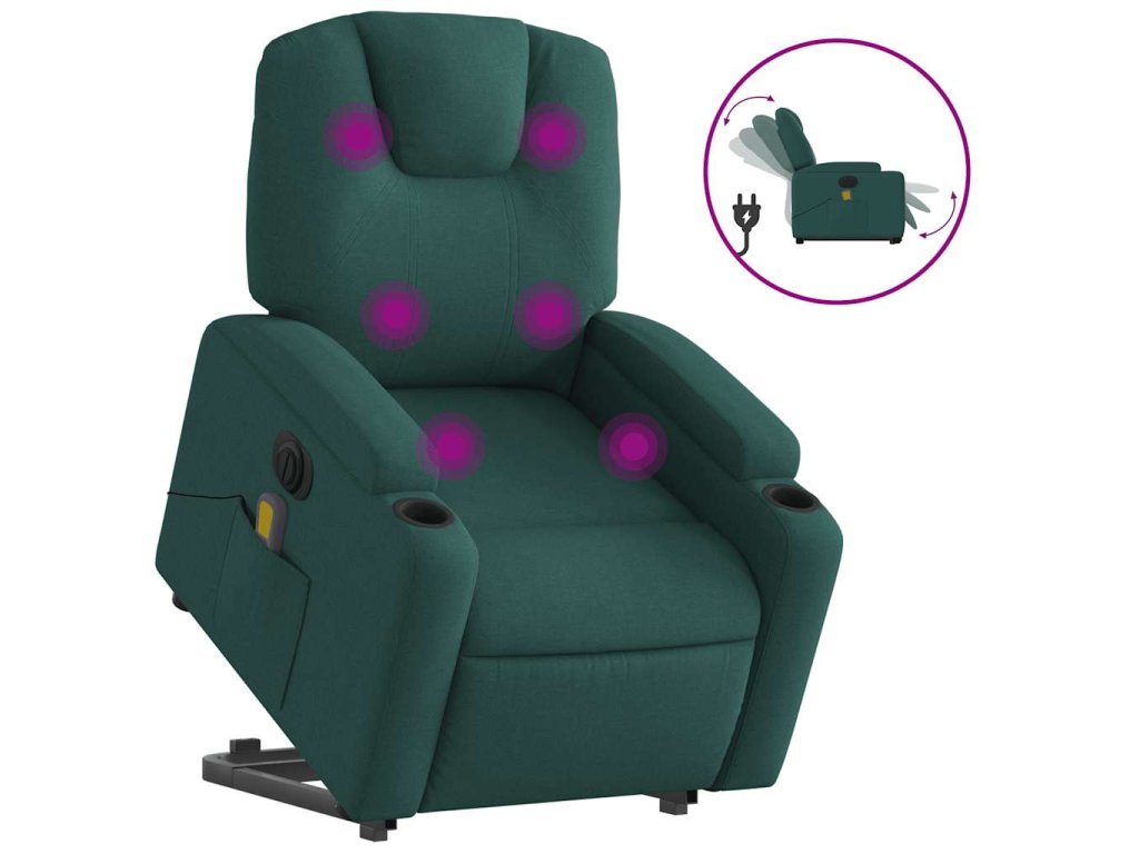 Elektrické zvedací masážní polohovací křeslo zelené textil 3204410