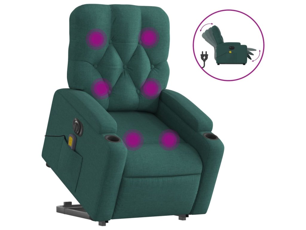 Elektrické zvedací masážní polohovací křeslo zelené textil 3204752