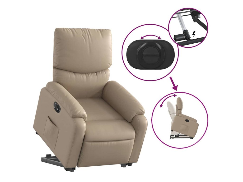 Elektrické zvedací polohovací křeslo cappuccino umělá kůže 3204906