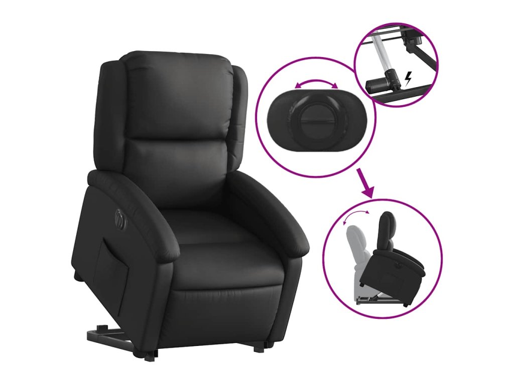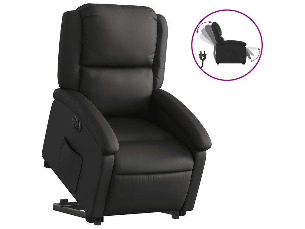 Elektrické zvedací polohovací křeslo černé pravá kůže 3204270
