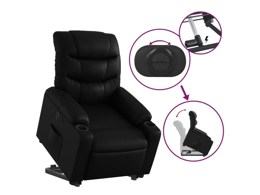 Elektrické zvedací polohovací křeslo černé umělá kůže 3206613