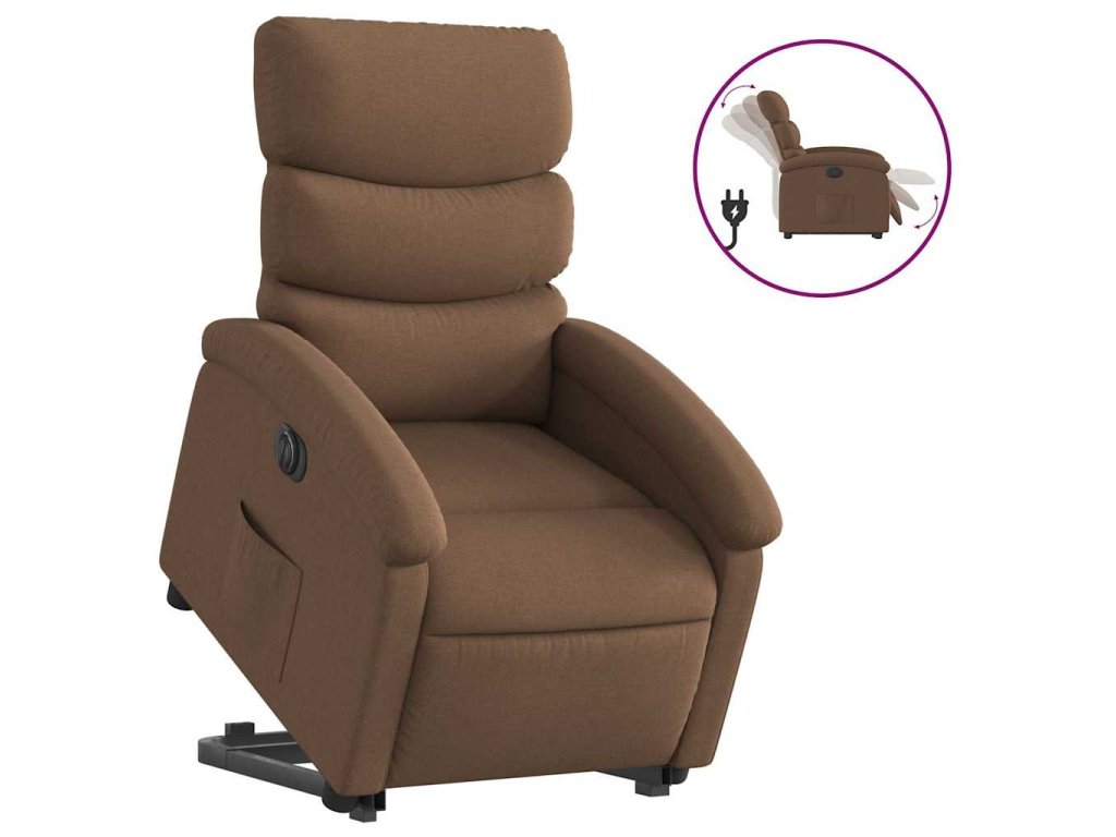 Elektrické zvedací polohovací křeslo hnědé textil 3204006