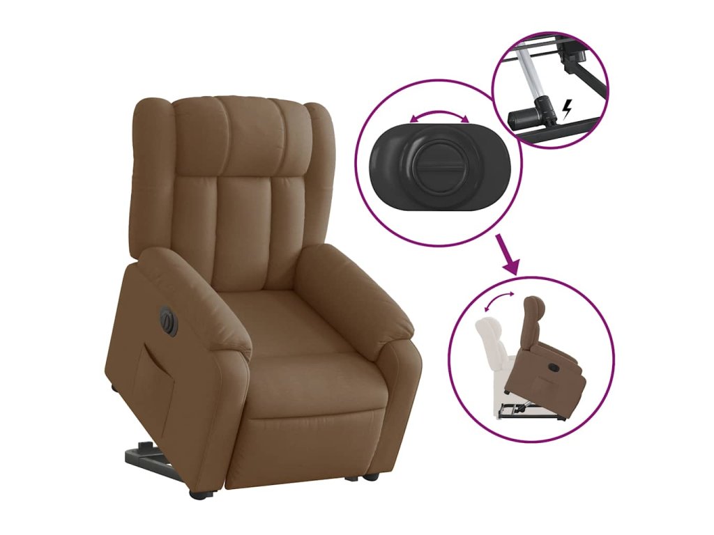 Elektrické zvedací polohovací křeslo hnědé textil 3205344