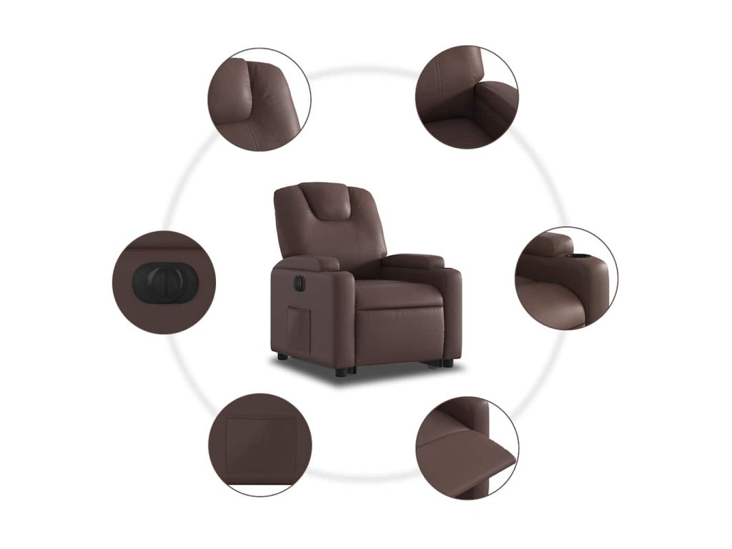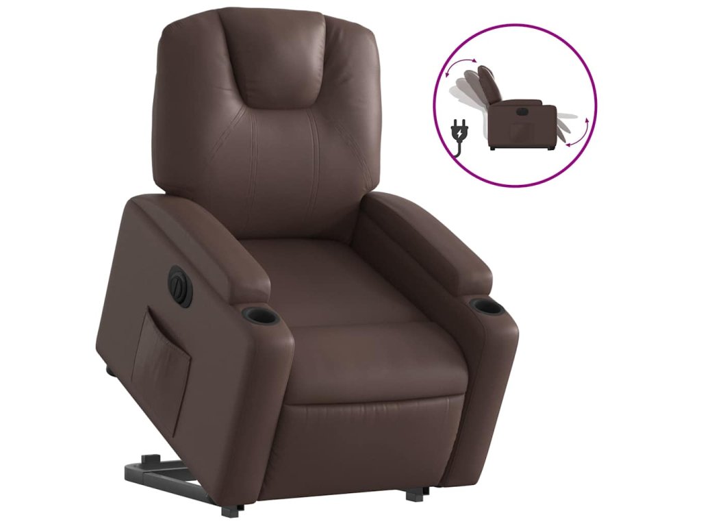 Elektrické zvedací polohovací křeslo hnědé umělá kůže 3204446