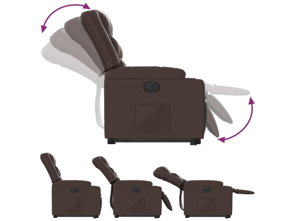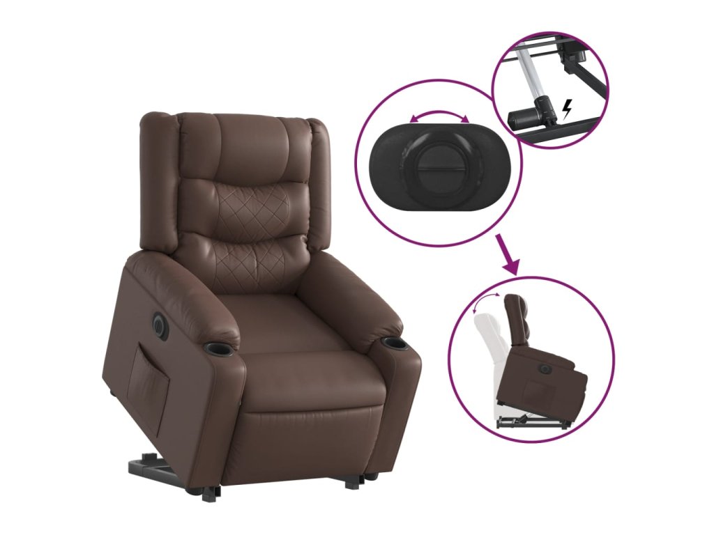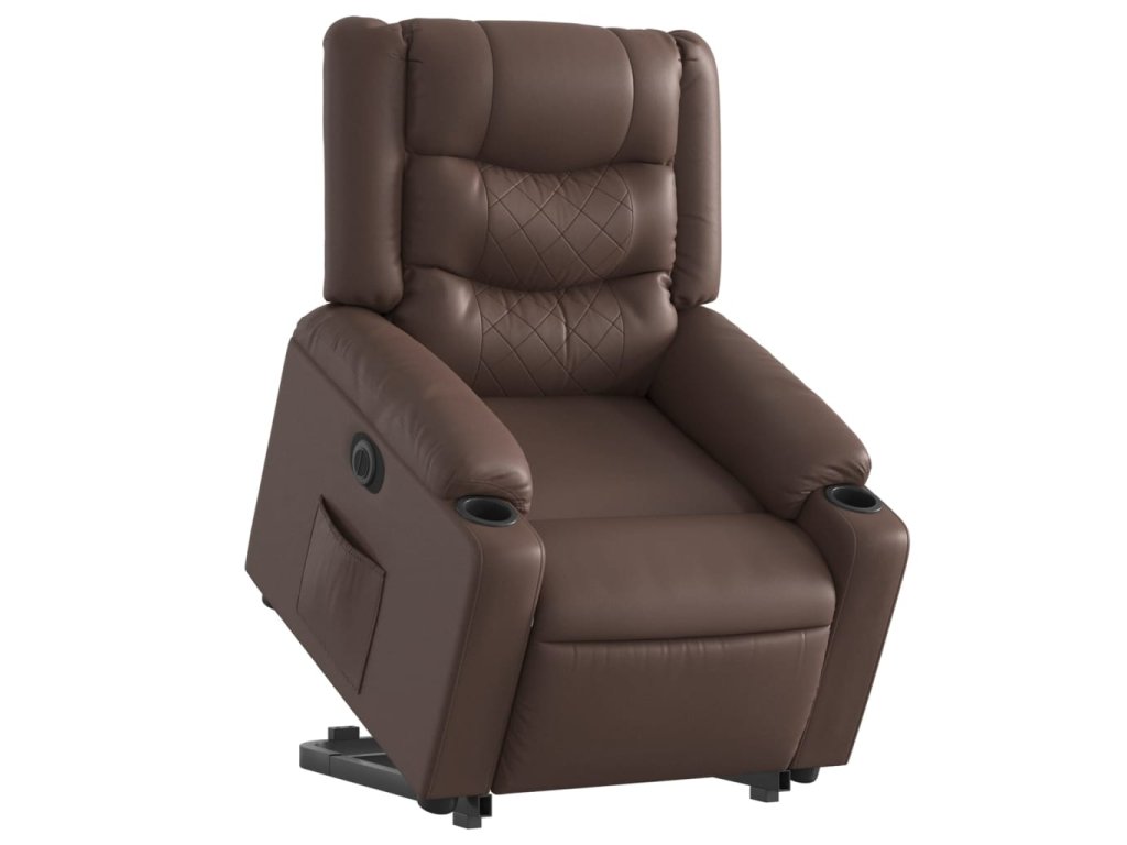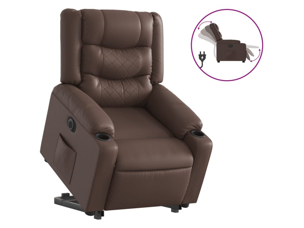 Elektrické zvedací polohovací křeslo hnědé umělá kůže 3206561