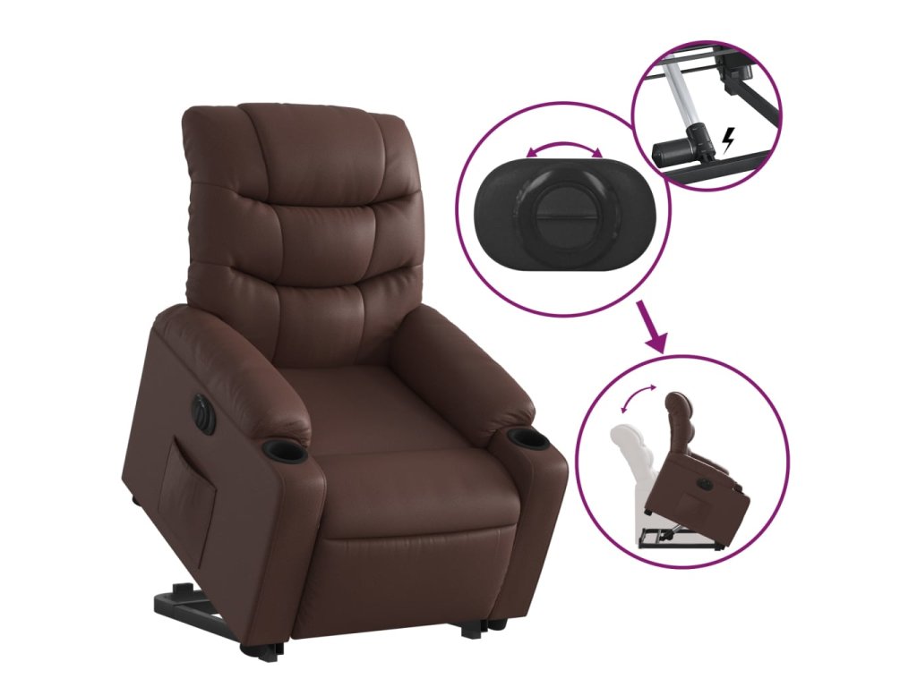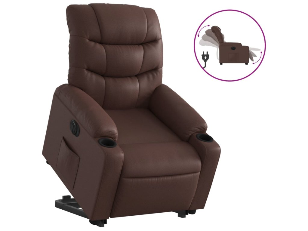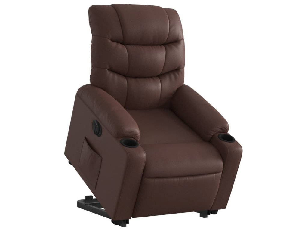 Elektrické zvedací polohovací křeslo hnědé umělá kůže 3206615