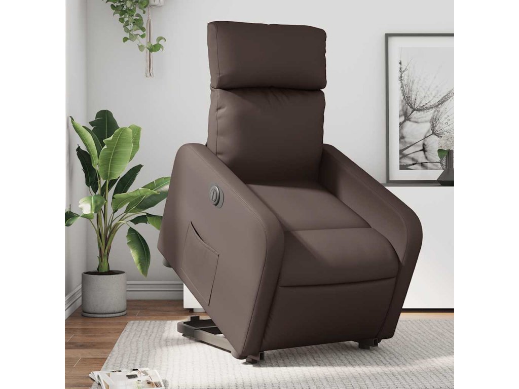 Elektrické zvedací polohovací křeslo hnědé umělá kůže 3206765