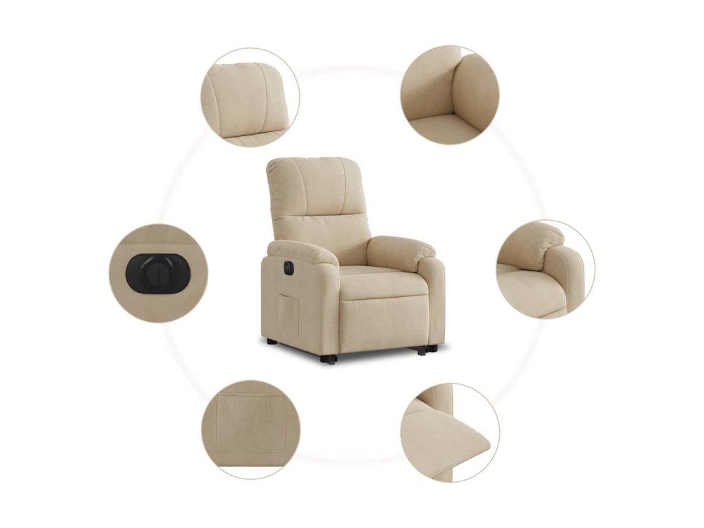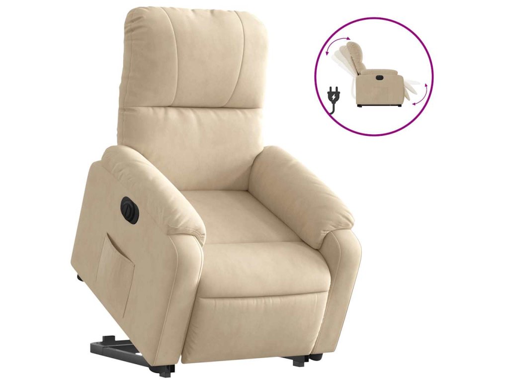Elektrické zvedací polohovací křeslo krémové mikrovlákno 3204947