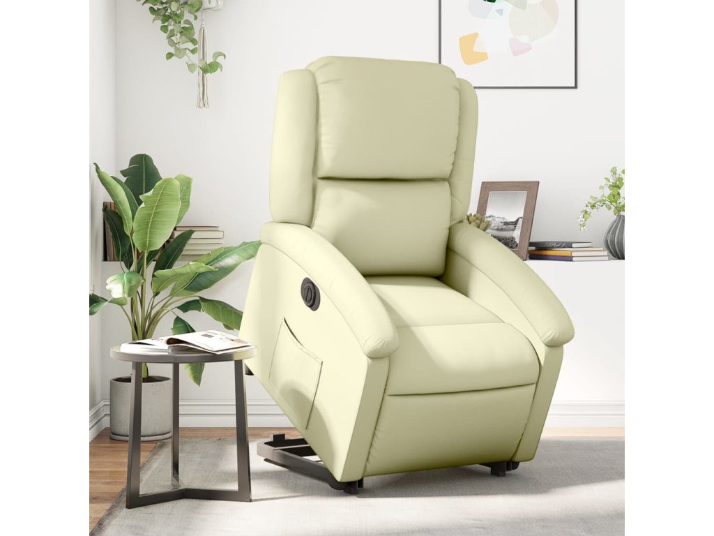 Elektrické zvedací polohovací křeslo krémové pravá kůže 3204272