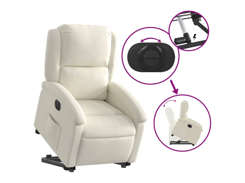 Elektrické zvedací polohovací křeslo krémové samet 3204331