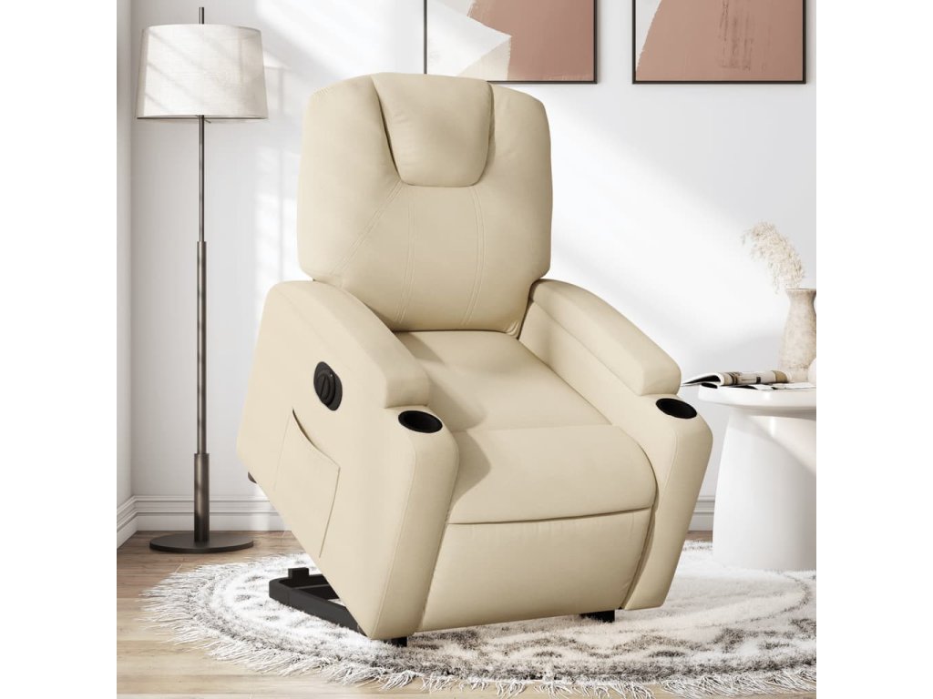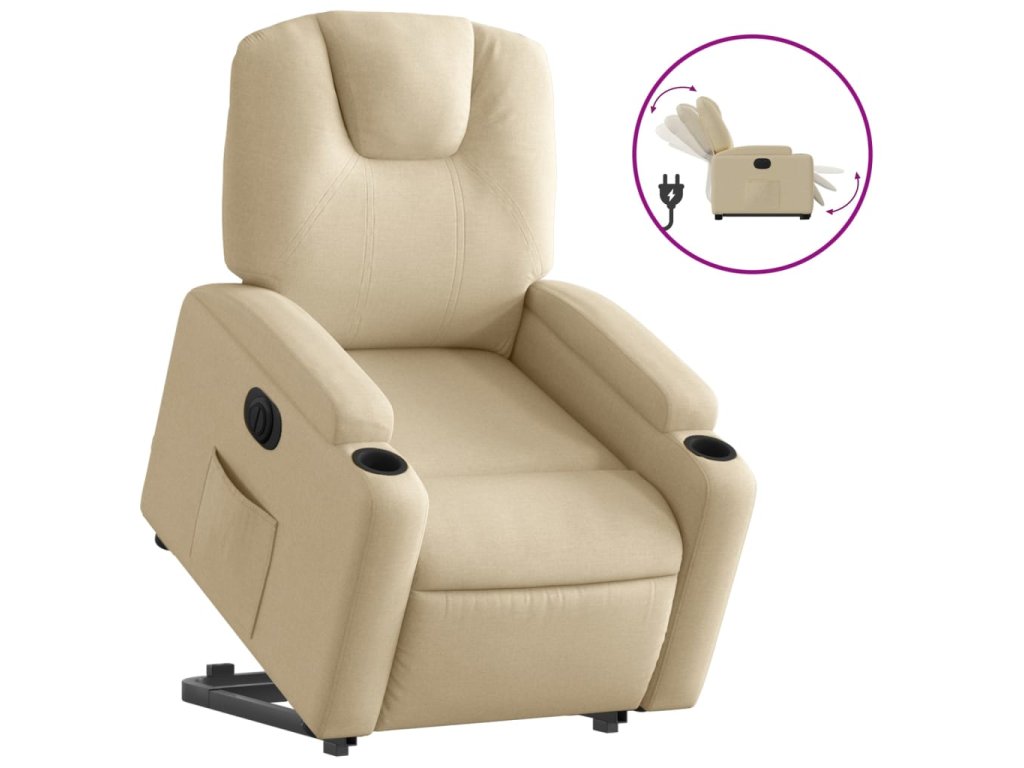 Elektrické zvedací polohovací křeslo krémové textil 3204401