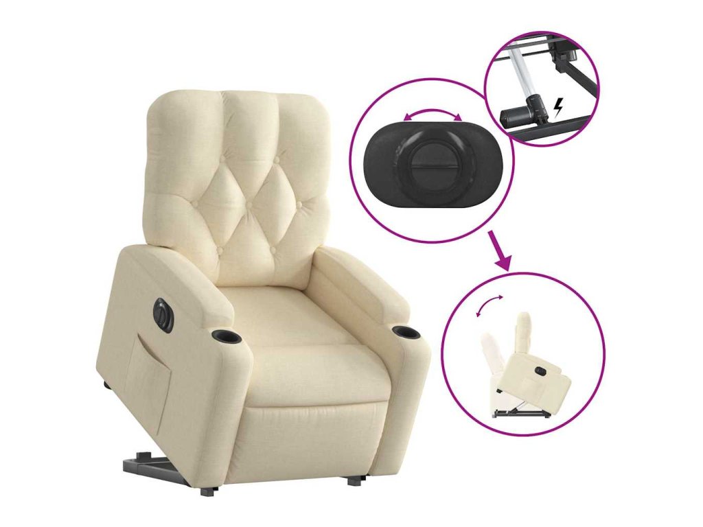 Elektrické zvedací polohovací křeslo krémové textil 3204743