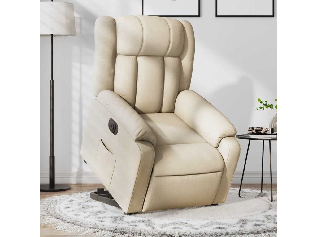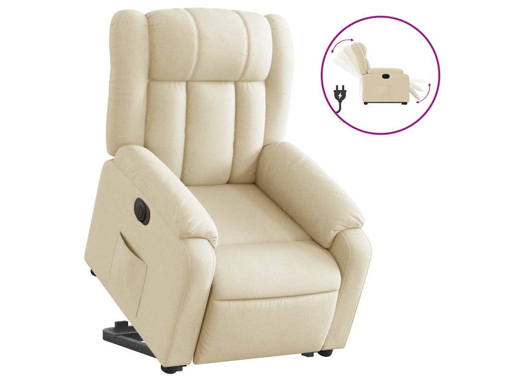 Elektrické zvedací polohovací křeslo krémové textil 3205349