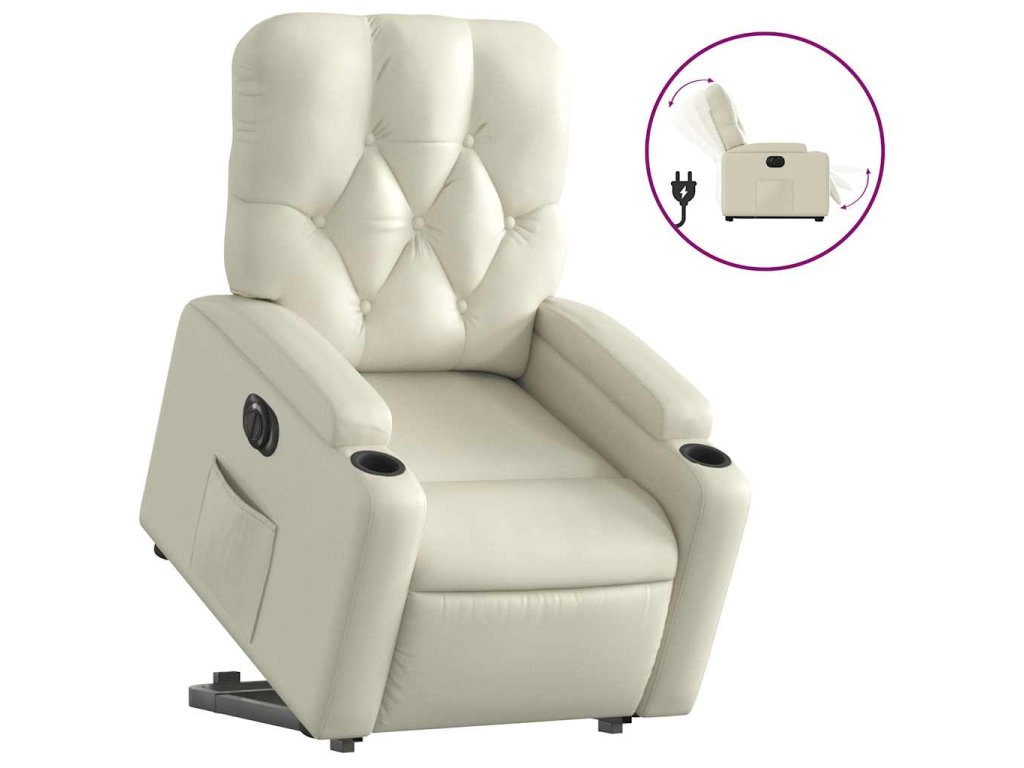 Elektrické zvedací polohovací křeslo krémové umělá kůže 3204787