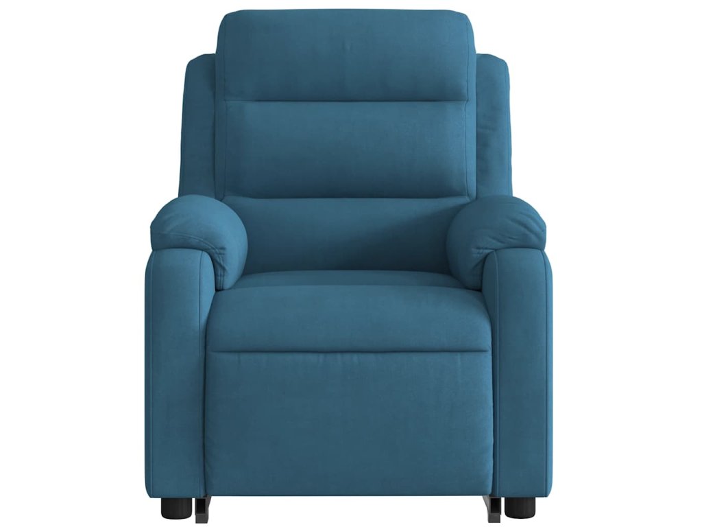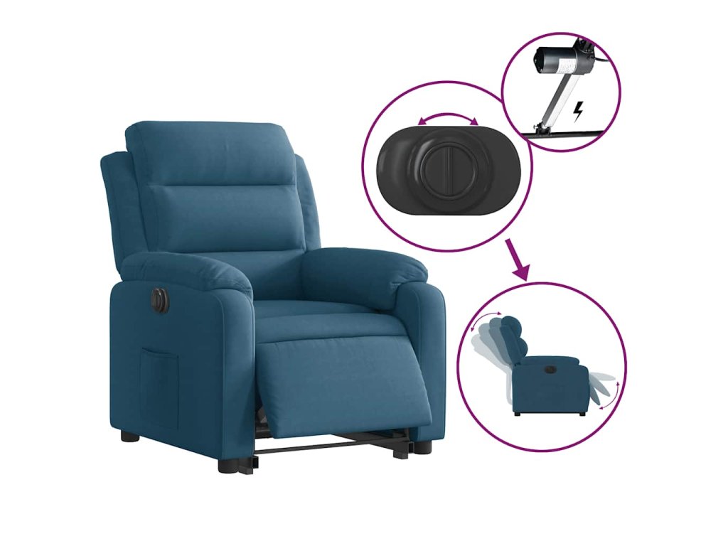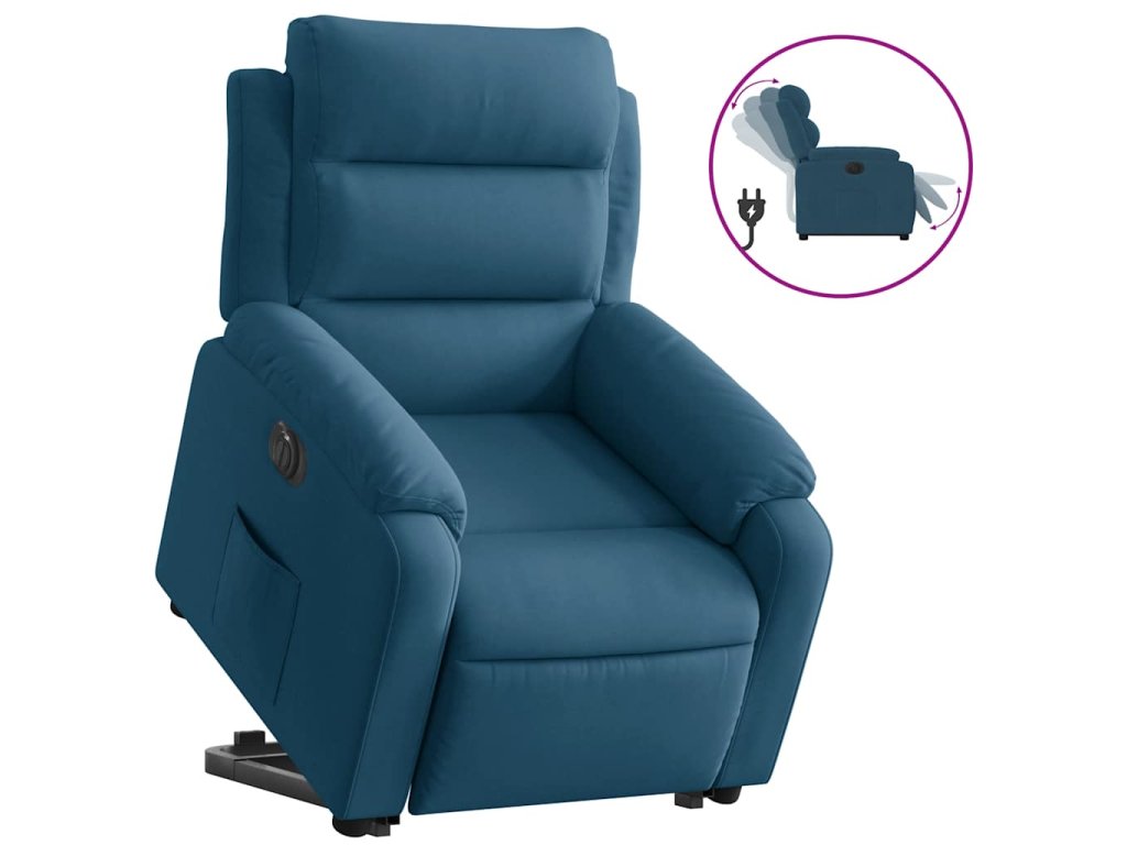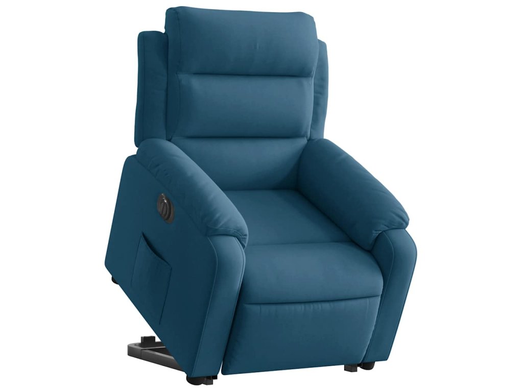 Elektrické zvedací polohovací křeslo modré samet 3205124