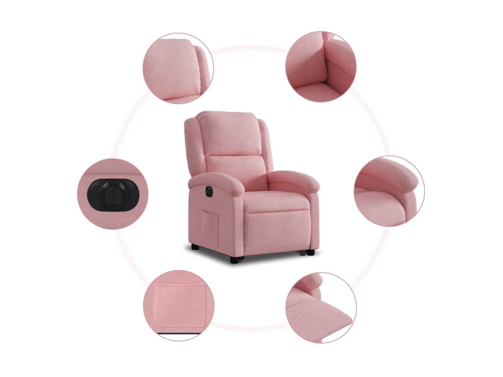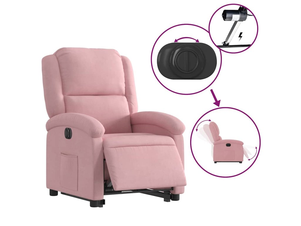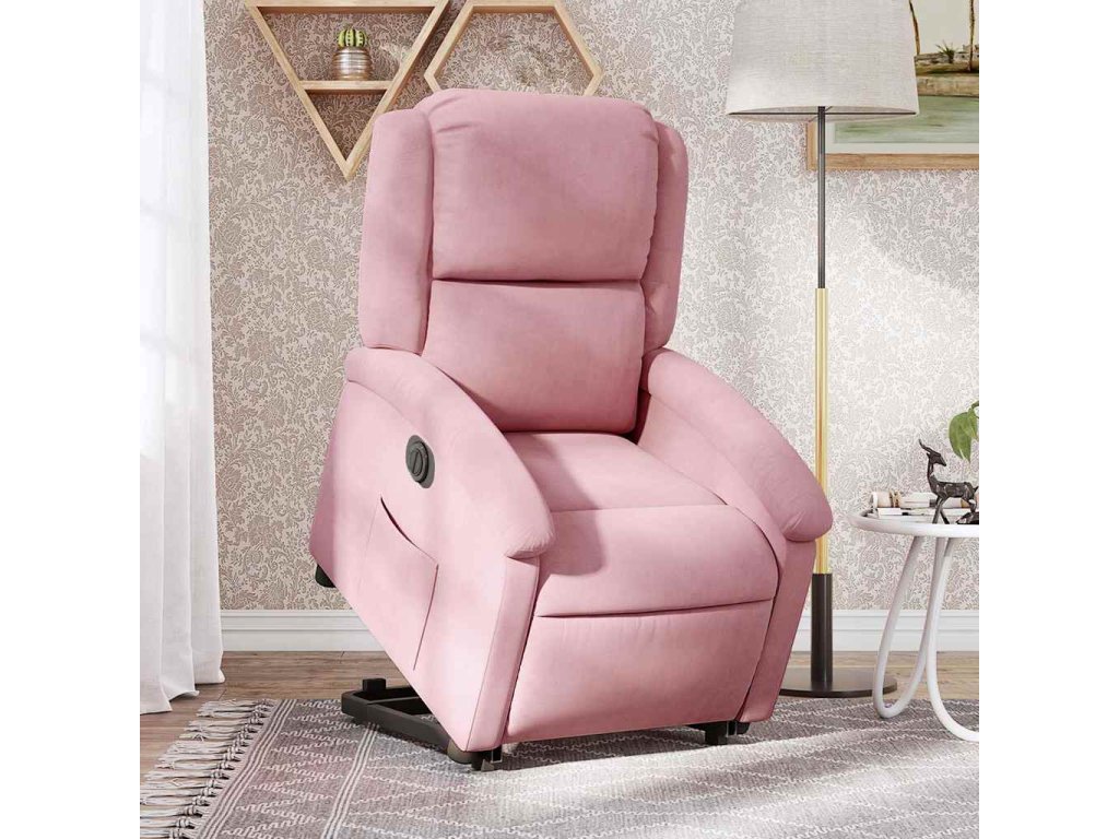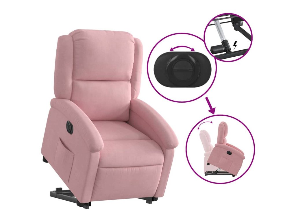 Elektrické zvedací polohovací křeslo růžové samet 3204326