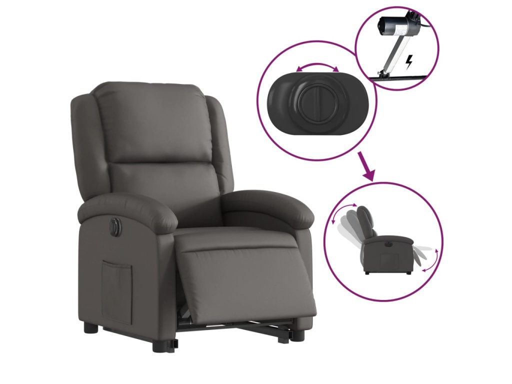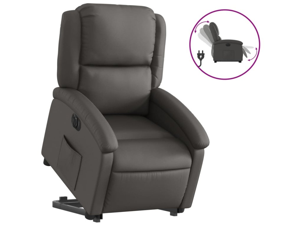 Elektrické zvedací polohovací křeslo šedé pravá kůže 3204273
