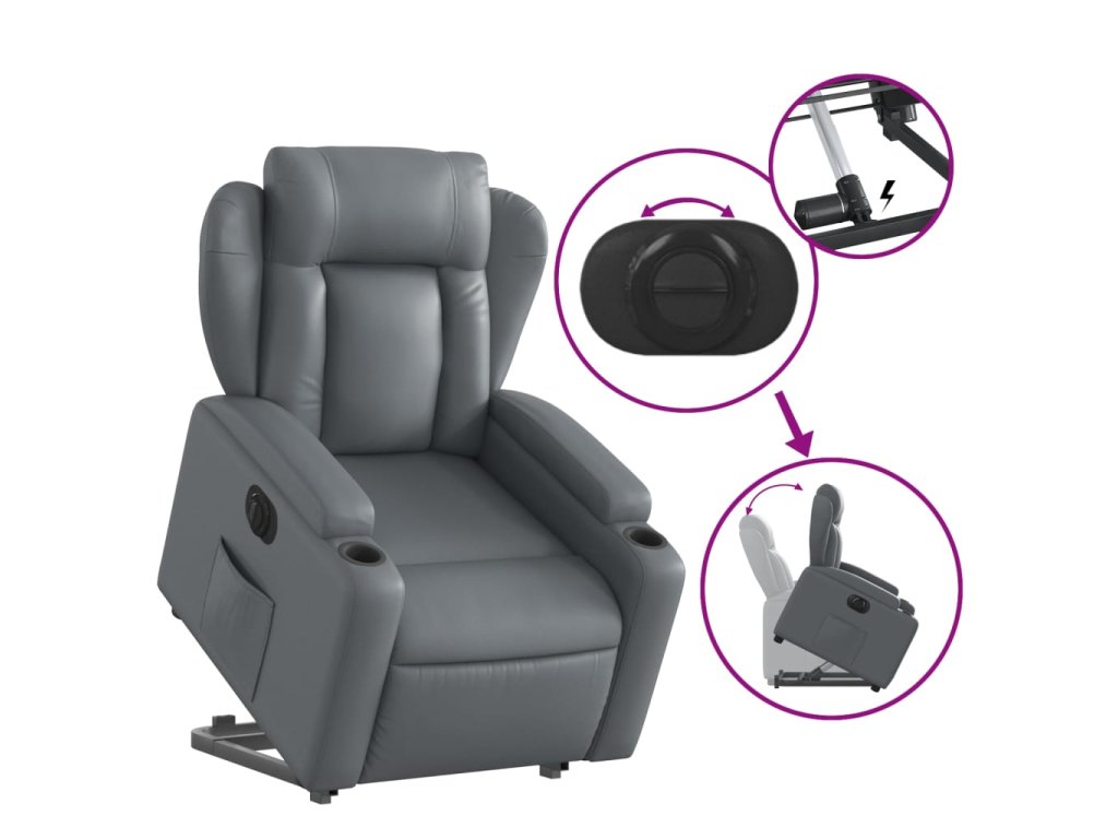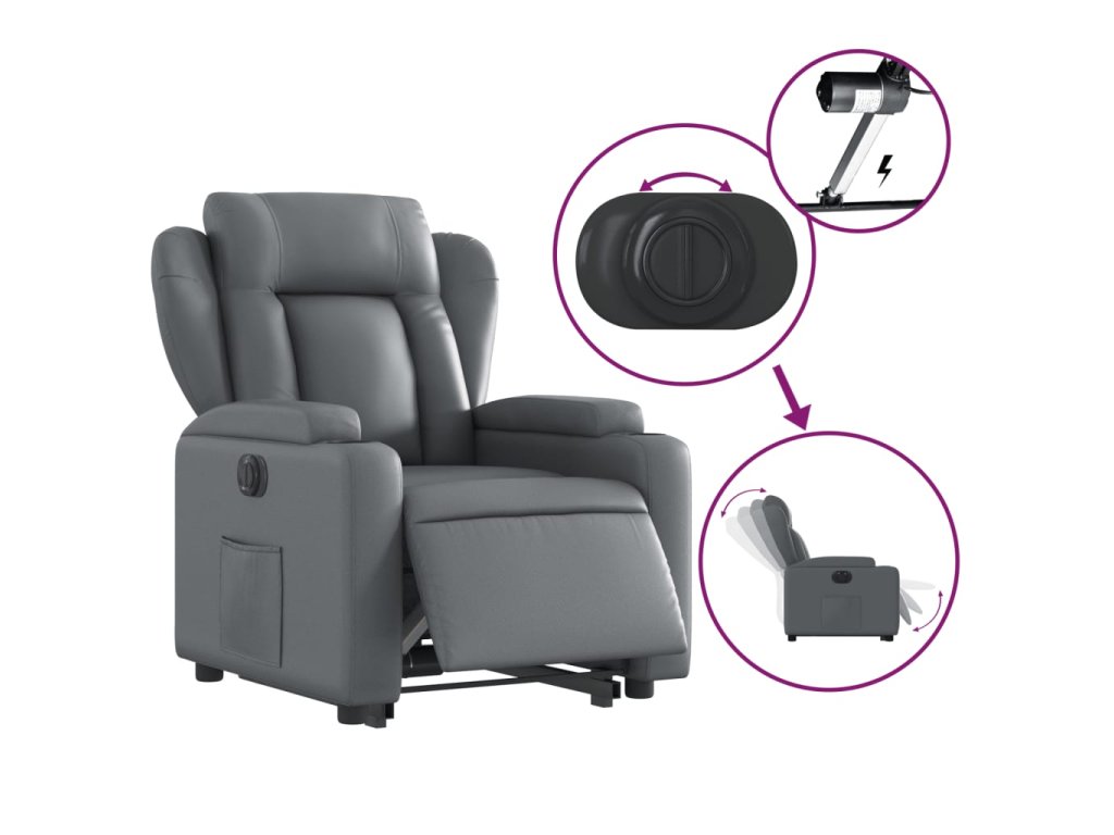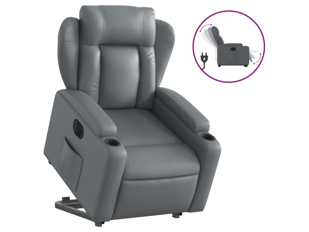 Elektrické zvedací polohovací křeslo šedé umělá kůže 3204561