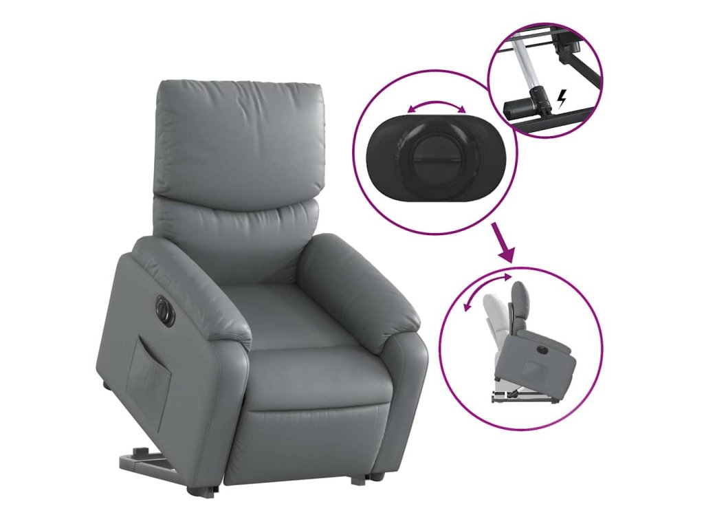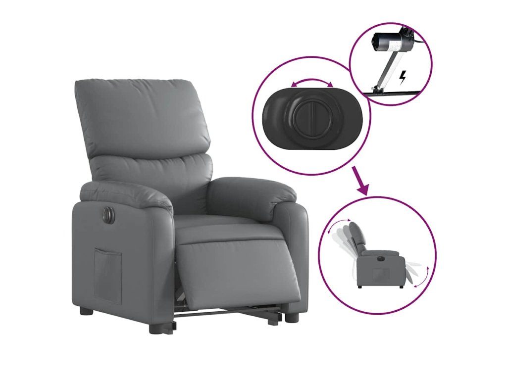 Elektrické zvedací polohovací křeslo šedé umělá kůže 3204903