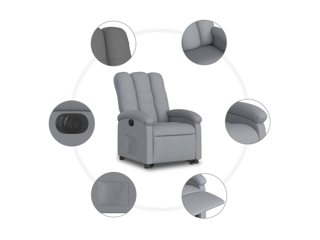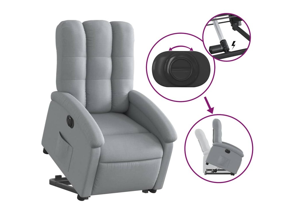 Elektrické zvedací polohovací křeslo světle šedé textil 3204116