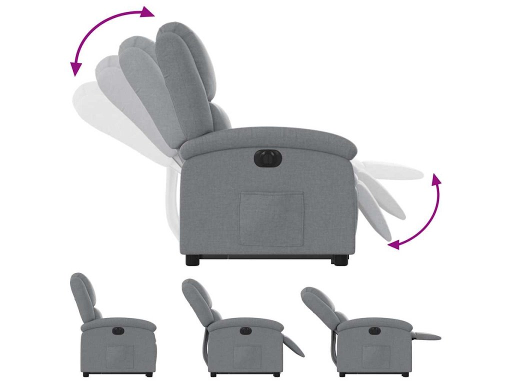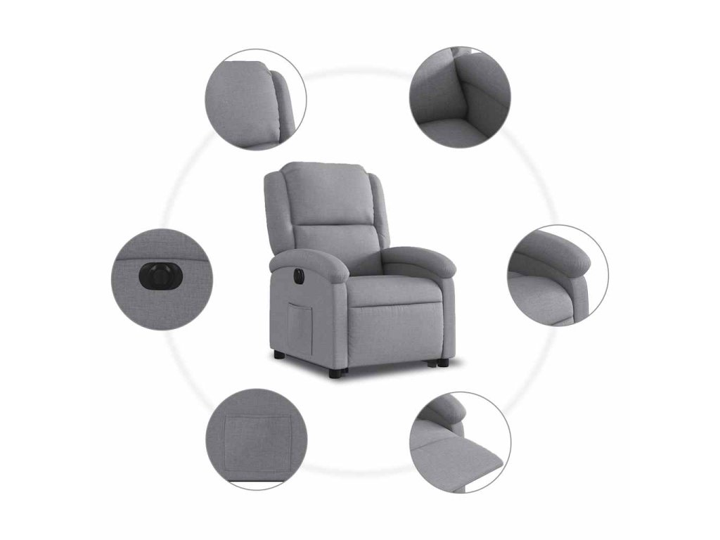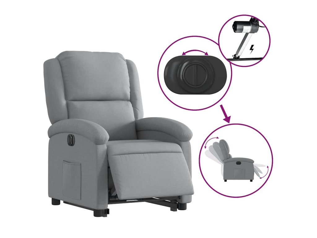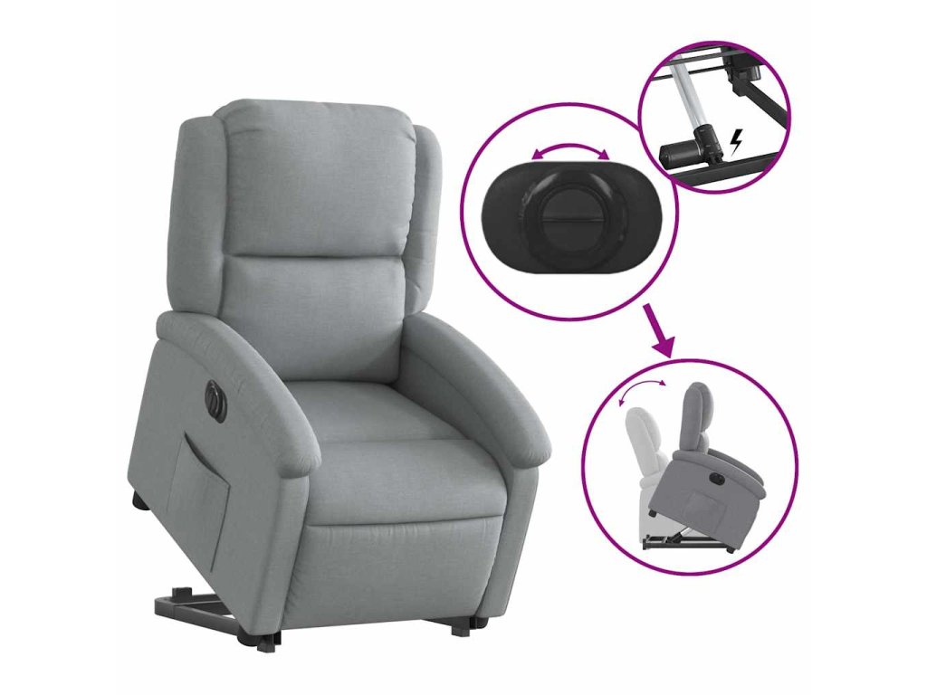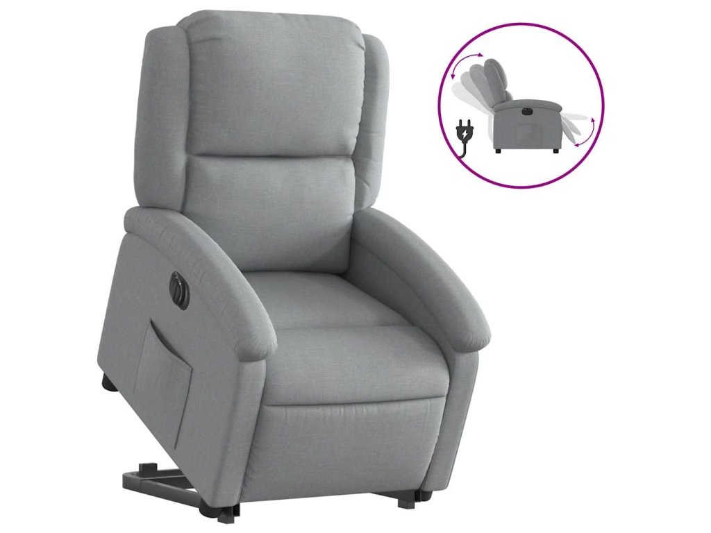 Elektrické zvedací polohovací křeslo světle šedé textil 3204188