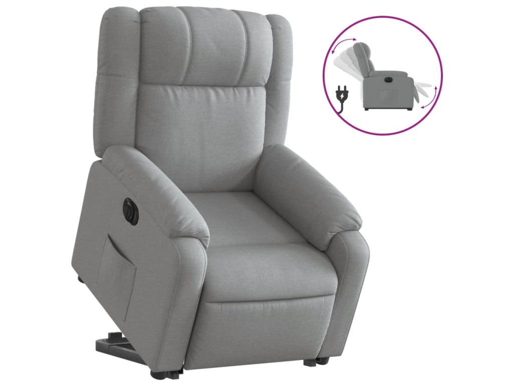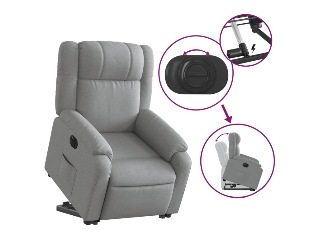 Elektrické zvedací polohovací křeslo světle šedé textil 3205226